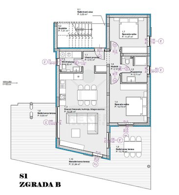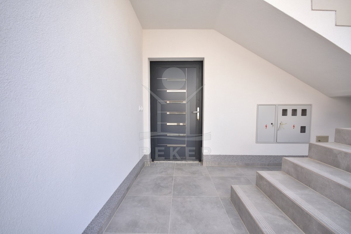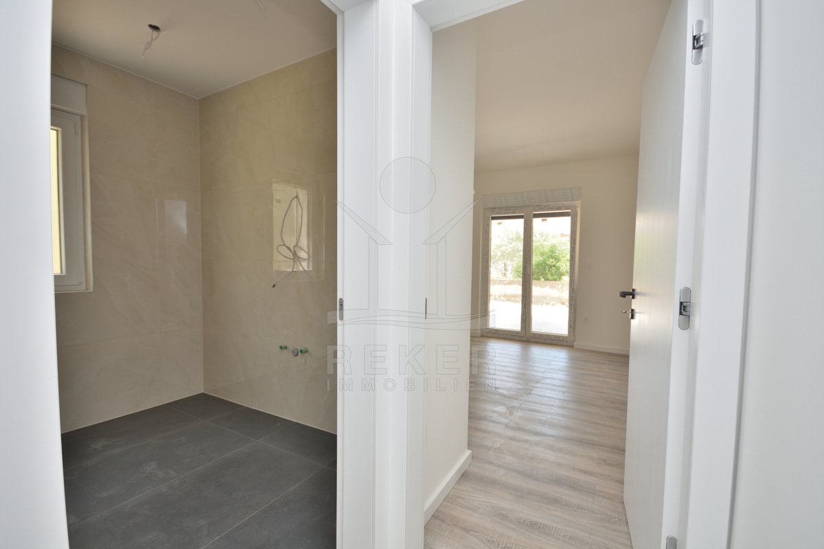 Vodice liegt direkt an der Küste, in einer beliebten, aber nicht überlaufenen Region. Die Wohngegend dieses Neubauprojekts ist ruhig und entspannt, kein Durchgangsverkehr, wenig Lärm. Der Strand ist nur rund 600 Meter entfernt, also bequem zu Fuß erreichbar. Auch das Ortszentrum mit Geschäften und Infrastruktur liegt in Gehweite, etwa 800 Meter. Die Nachbarschaft besteht überwiegend aus gepflegten Wohnhäusern mit Gärten und mediterranem Flair.