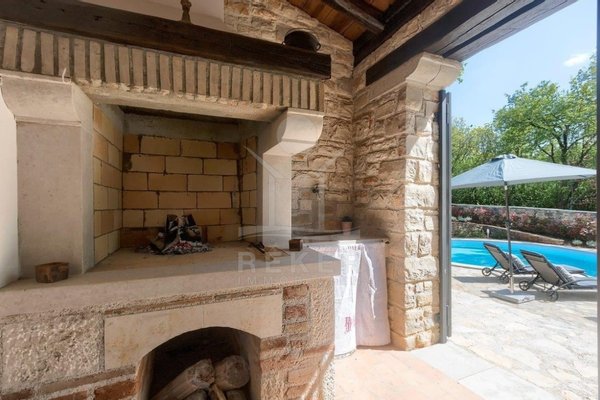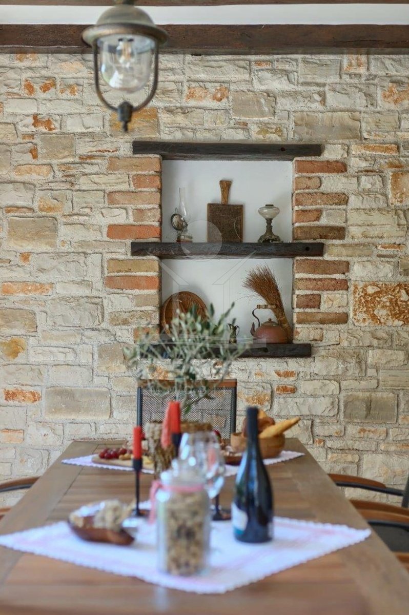 Willkommen in Muntrilj – einem kleinen Ort bei Tinjan, wo Ruhe und Natur noch spürbar sind. Dieses freistehende Steinhaus liegt am Rand eines idyllischen Dorfes, direkt am Waldrand. Eine asphaltierte Zufahrt bringt Sie bequem zum Grundstück. Die
