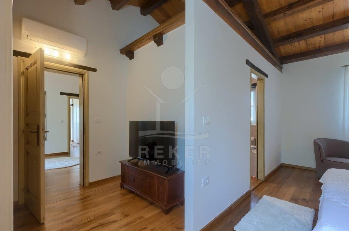 Willkommen in Muntrilj – einem kleinen Ort bei Tinjan, wo Ruhe und Natur noch spürbar sind. Dieses freistehende Steinhaus liegt am Rand eines idyllischen Dorfes, direkt am Waldrand. Eine asphaltierte Zufahrt bringt Sie bequem zum Grundstück. Die Umgebung ist grün, friedlich und sonnig – ideal für alle, die abschalten wollen. Und wer das Meer liebt: In nur 17 km Luftlinie wartet die Küste. Sie bleiben unter sich und doch nicht abgeschnitten.