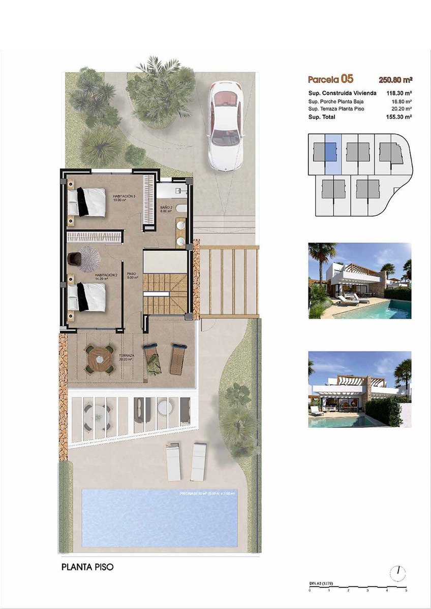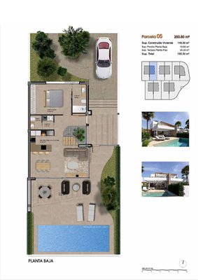 Diese kleine Wohnanlage besteht aus 22 Doppelhaushälften mit jeweils 2 Etagen, eigenem Parkplatz im Freien, privatem Pool, Terrasse und Dachterrasse. Die Häuser bieten einen sehr schönen Ausblick und die großen Fenster sorgen für eine optimale Beleuchtung der Innenräume.