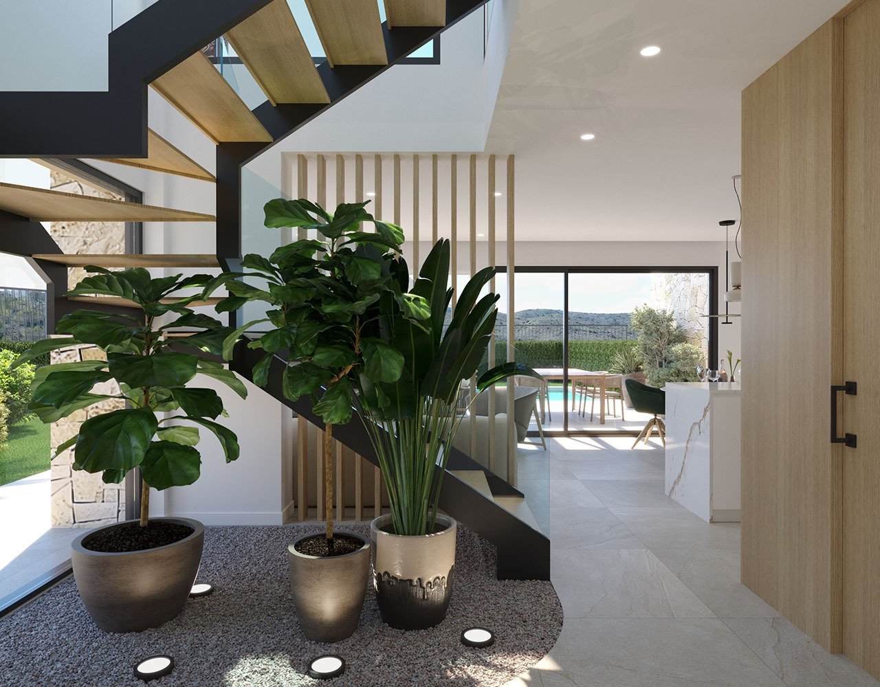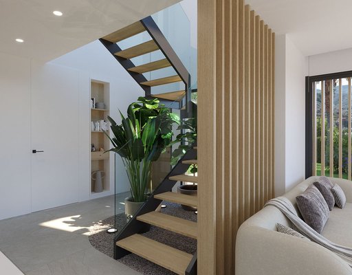 Die Häuser werden in hervorragender Qualität erbaut: Wärmedämmung und Schallschutz entsprechend der neuesten Bauvorschriften, Aerothermie für die Heißwasseraufbereitung, Aluminiumfenster mit Doppelverglasung, Sicherheitstüren, Klimaanlage, Fußbodenheizung in den Badezimmern, Einbauschränke in den Schlafzimmern, Einbauküchen mit Elektrogeräten und vieles mehr. Darüber hinaus gehören zu jeder Wohneinheit ein privater Kfz-Stellplatz und ein Privatpool.
