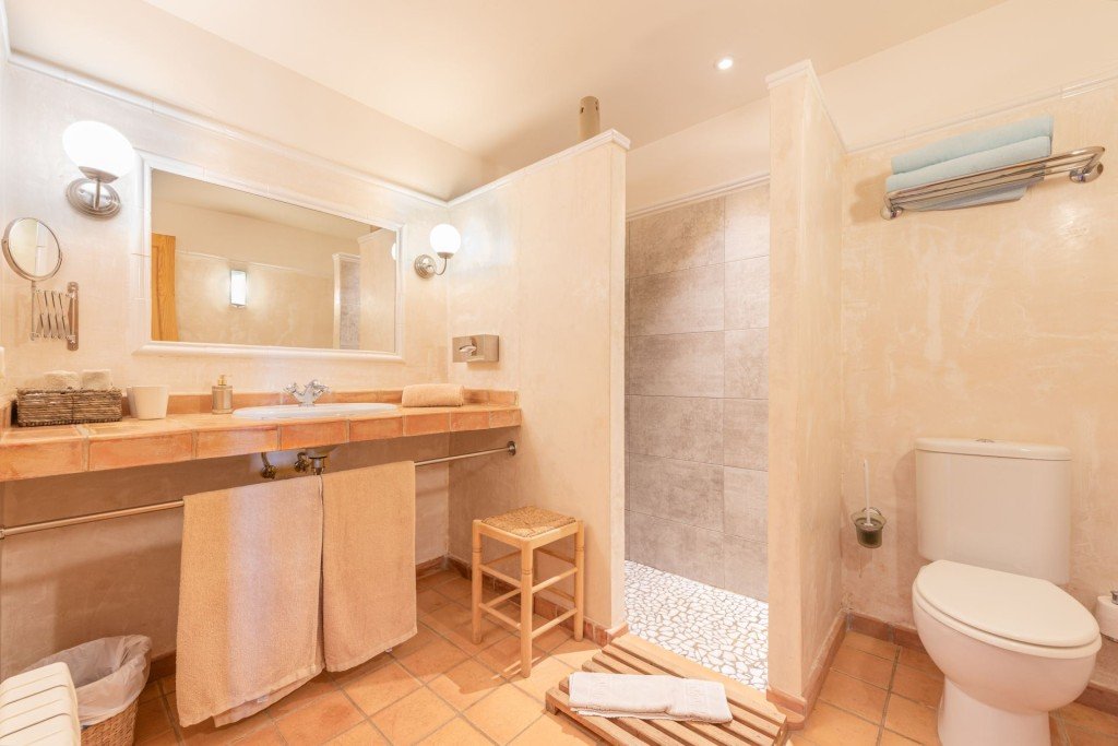 Es gibt zwei komplett ausgestattete und unabhängige Häuser. Das Haupthaus verfügt über ein großzügiges Wohn- und Esszimmer mit freiem Blick auf die Landschaft, eine Küche, ein Schlafzimmer sowie ein Gästebad im Erdgeschoss. Im Obergeschoss befinden sich ein Hauptschlafzimmer mit eigenem Bad und zwei Einzelzimmer mit gemeinsamem Badezimmer.