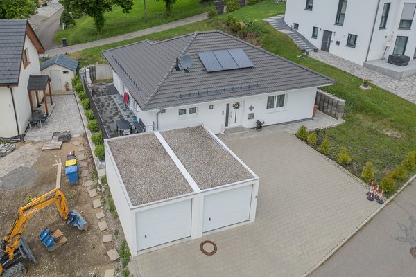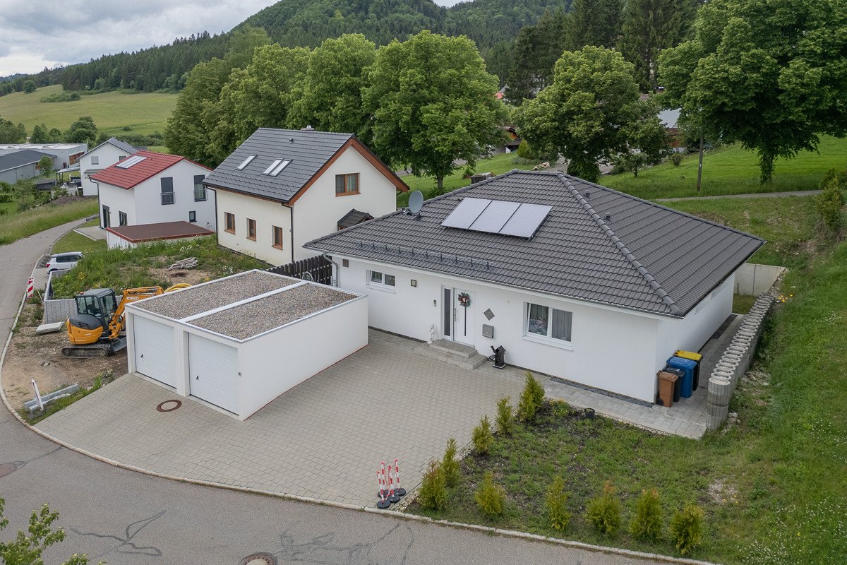 Dieser neuwertige Bungalow befindet sich in einer ruhigen Wohnlage im Neubaugebiet von Wehingen-Harras und wurde als KfW-45 Haus konzipiert. Das Haus wurde im Jahr 2020 erbaut und bietet eine Wohnfläche von 120 qm auf einem großzügigen Grundstück von 552 qm.