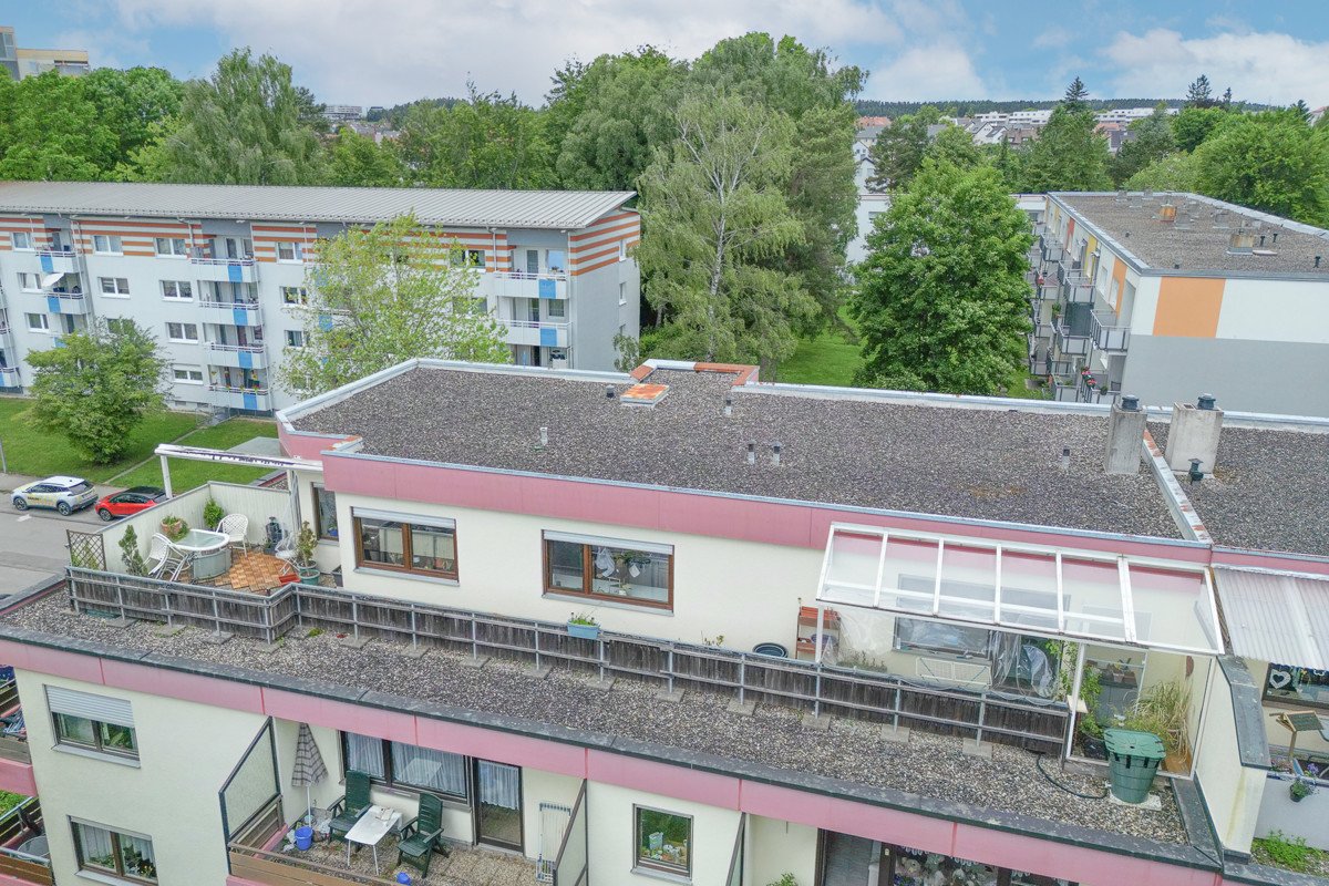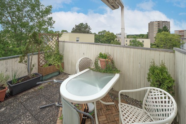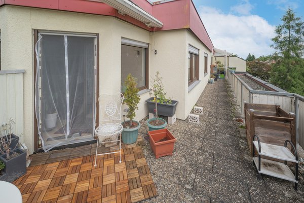 Ein Highlight der hellen Wohnung ist der große Balkon, die flankierende Dachterrasse, welche Ihnen einen wunderbaren Rückzugsort im Freien bietet und Freiblicke in die Landschaft bietet. Hier können Sie entspannen, die frische Luft genießen oder gesellige Stunden mit Freunden verbringen. Die Terrasse ist teilweise überdacht.