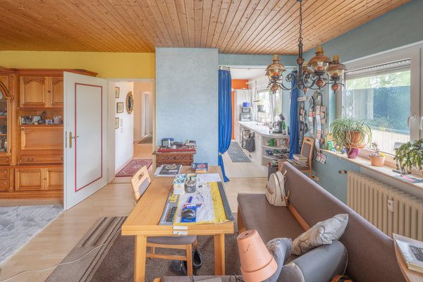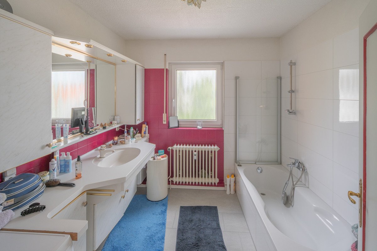 Mit insgesamt 3,5 Zimmern bietet die Ausnahmewohnung ausreichend Platz für eine Familie oder ein Paar, das Wert auf gehobenen Wohnkomfort mit Fliesen und Laminatböden legt. Die Laminatböden wurden 2023 erneuert. Ein Tageslichtbad mit Dusche und Badewanne sowie ein zusätzliches Gäste-WC sind vorhanden.