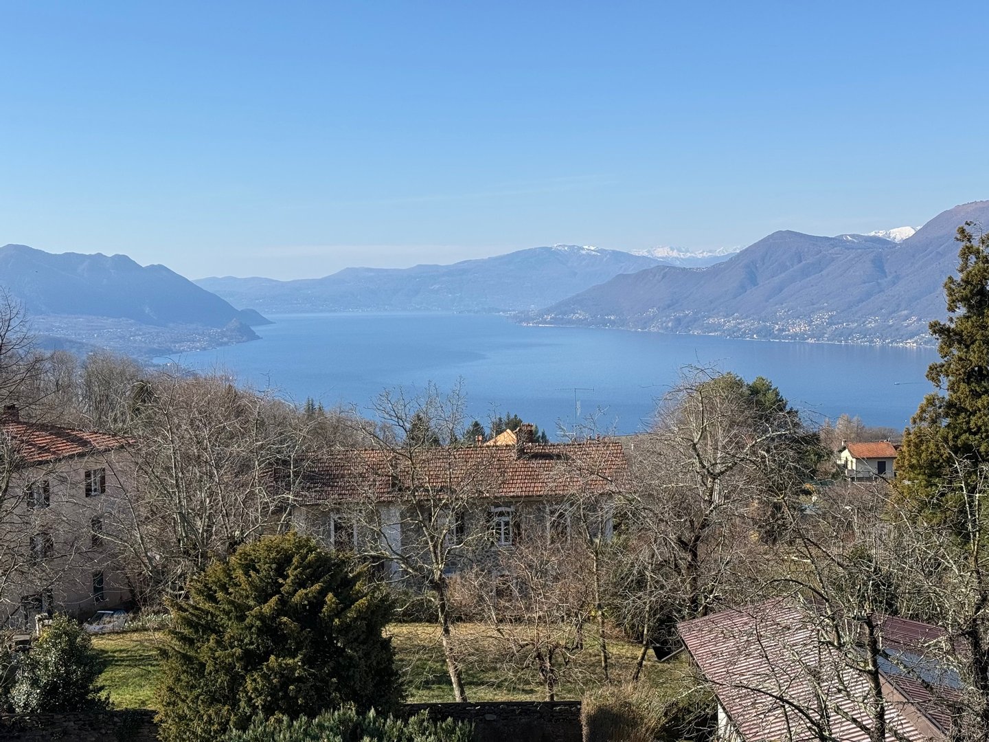 Auf einem natürlichen Plateau über dem See, im Ort Agra, in herrlicher, sonniger Aussichtslage mit Blick über den ganzen Mittelteil vom Lago Maggiore bis zum Monte Rosa Massiv liegt dieses Einfamilienhaus, nur wenige Gehminuten vom Zentrum entfernt