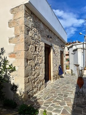 Traditionelles Steinhaus mit Meerblick. Das Haus erstreckt sich über zwei Etagen und befindet sich auf einem Grundstück von 120 m². Es wird möbliert verkauft. Das Erdgeschoss ist 60 m² groß und besteht aus einem Wohnbereich, einer Küche, einem Schlafzimmer, einem Badezimmer und einem kleinen Bürobereich. Eine interne Treppe führt in die obere Etage, die 40 m² groß ist. Die obere Etage besteht aus einem offenen Wohnbereich mit kleiner Küche, einem Schlafzimmer und einem fantastischen großen Balkon von 20 m² mit Berg- und Meerblick. Es gibt einen Garten von ca. 50 m² mit Zitronen- und Orangenbäumen und einen Innenhof von ca. 10 m². Das Haus hat einen guten Zugang und alle Dienste sind angeschlossen. Es genießt Blick auf die Berge, das Dorf und das Meer und liegt 15 km vom Meer entfernt.