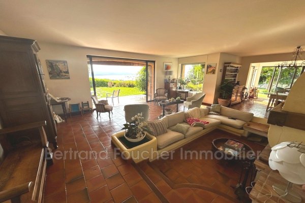 EXCLUSIVE - CAVALAIRE PARK - BERTRAND FOUCHER IMMOBILIER invites you to discover this magnificent sea view villa built on a plot of 1,144 m². The villa, with a total surface area of approximately 180m², is composed on the ground floor of a large living room/lounge with dining room, all opening onto a covered terrace and the garden, a kitchen, a storeroom, a bedroom with bathroom and WC, a shared WC, a 15m² cellar Upstairs, there are four bedrooms, two with shower rooms and one with bathroom, a toilet, and a solarium. Outside there is a garage and a 12 m² storage room which can be converted into a bedroom if necessary. A swimming pool and its beach The whole property benefits from a magnificent SEA VIEW over the bay of CAVALAIRE