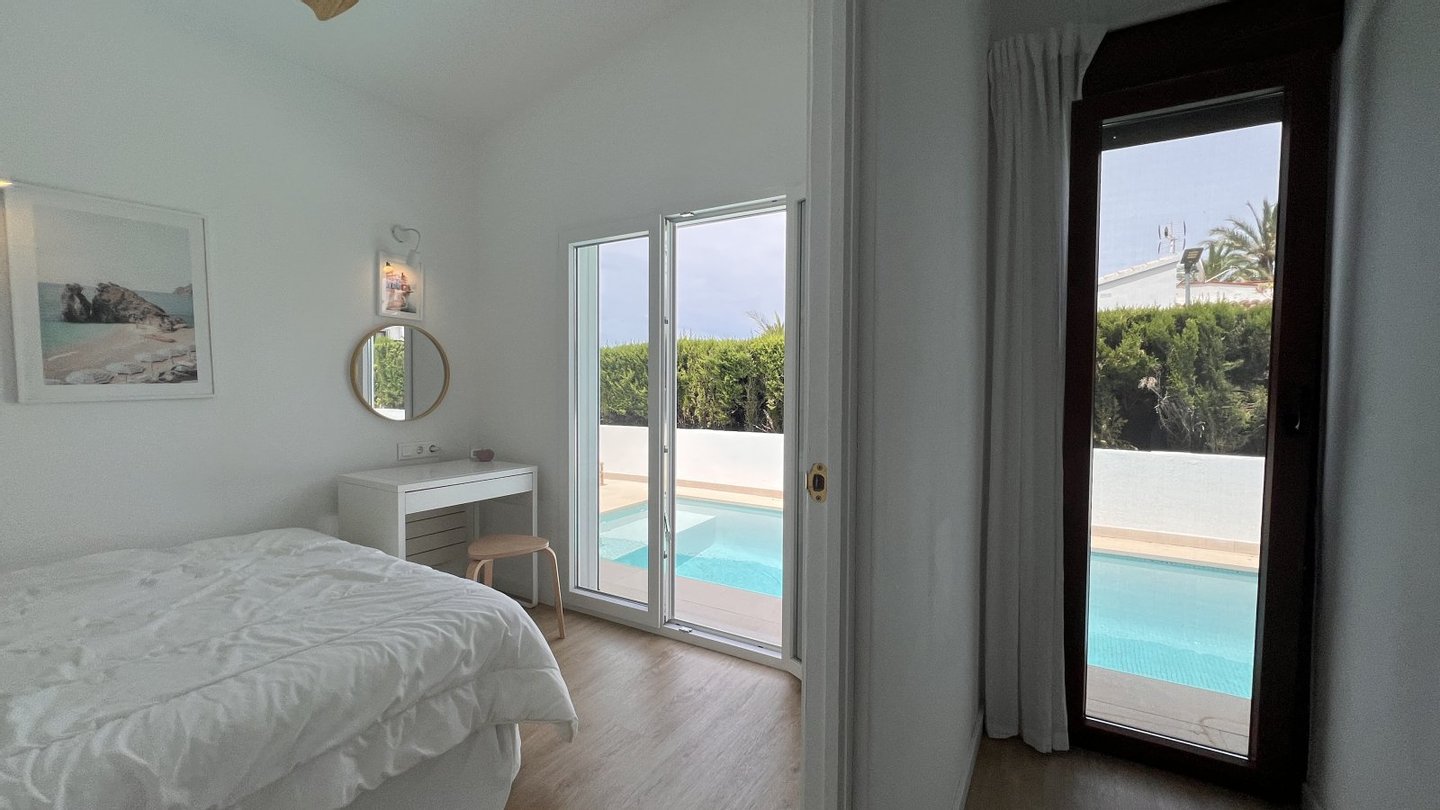 Auf einer Wohnfläche von ca. 98 m² bietet das Haus vier Schlafzimmer, eine neue Einbauküche, ein modernes Bad sowie eine separate Dusche mit WC - ideal für Familien, Feriengäste oder auch komfortables Wohnen im Alter. Die hochwertigen PVC-Isolierfenster, neue Bodenbeläge innen wie außen sowie eine moderne Klimaanlage (warm/kalt) sorgen das ganze Jahr über für angenehmes Wohnklima.