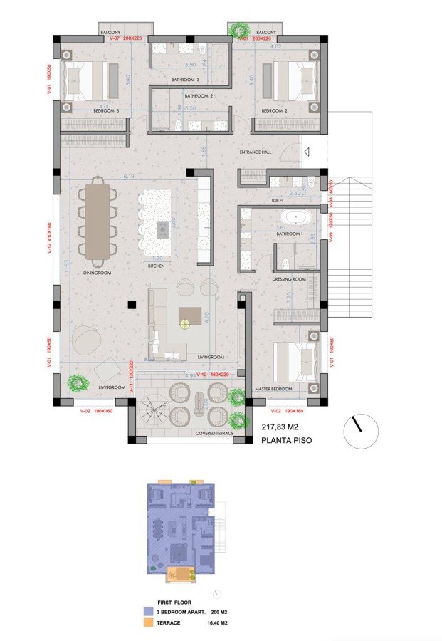 Die Immobilie ertreckt sich über eine bebaute Fläche von insgesamt 256m2 , wovon die reine wohnfläche ca. 200 m² beträgt. Mit drei geräumigen Schlafzimmern sowie drei modernen en-suite-Badezimmern bietet die Immobilie reichlich Platz für Familie und Gäste. Die Bauherren, die über umfangreiche Erfahrung in deutschen Immobilienprojekten verfügen, haben bewusst die hochwertigsten Produkte und Ausstattungen auf dem Markt ausgewählt, um dem neuen Eigentümer höchsten Komfort zu gewährleisten. Zu den Ausstattungshighlights zählen eine komplette Klimaanlage sowie Fußbodenheizung im gesamten Haus, hochwertige Geräte sowie Materialien und Fenster, die eine hohe Energieeffizienz gewährleisten. Die offene Designerküche besticht durch ihre moderne Ästhetik und ist mit hochwertigen Siemens -Elektrogeräten ausgestattet, die höchsten Ansprüchen gerecht werden und gemeinsame Kochabende zum Vergnügen machen. Das attraktive Angebot wird durch einen großzügigen Außenbereich abgerundet, der eine private Dachterrasse von ca. 40 m² und einen großzügigen Salzwasser-Gemeinschaftspool umfasst. Diese Immobilie eignet sich sowohl für diejenigen, die eine komfortable Unterkunft in der Nähe der Strände von Santa Ponsa und Port Adriano sowie der Golfplätze suchen, als auch für Investoren, die nach einer vielversprechenden Investitionsmöglichkeit Ausschau halten.