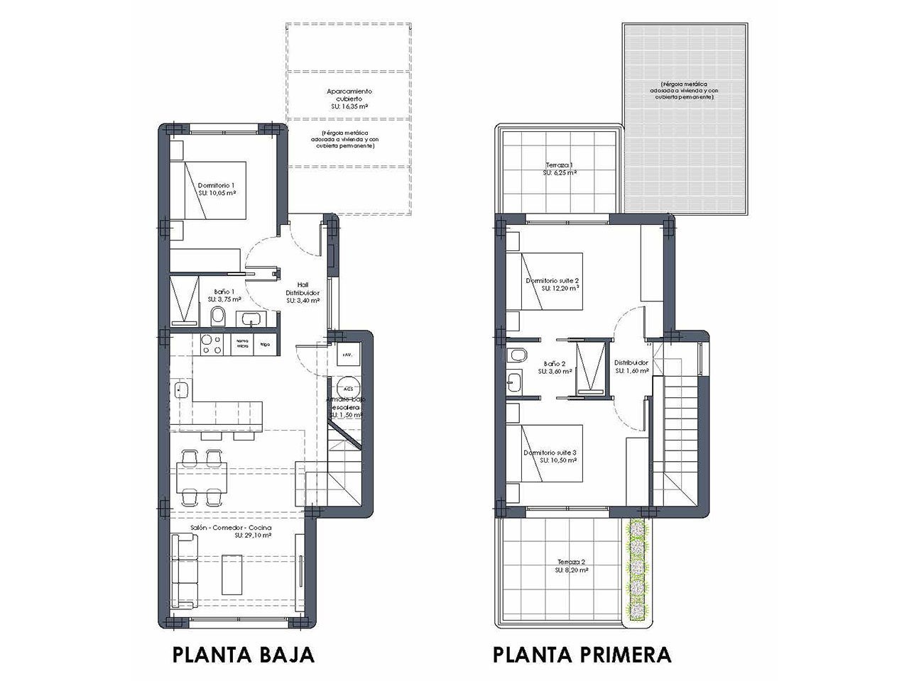 In dieser kleinen Anlage entstehend 20 Villen mit 3 Schlafzimmern und 2 Bädern. Der Bau einer Dachterrasse ist gegen Aufpreis möglich. Alle Villen sind nach Süden ausgerichtet.
