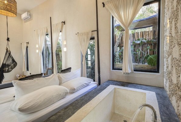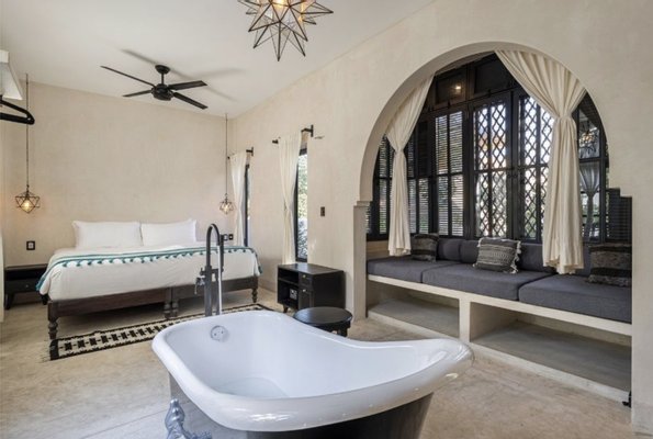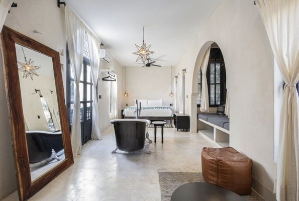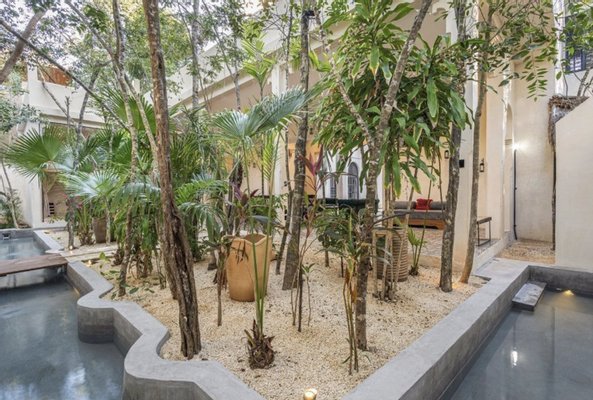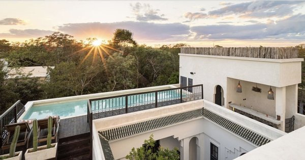 Luxuriöse Hacienda, umgeben vom Maya-Dschungel, mit einer Mischung aus marokkanischem und mexikanischem Design. Dieses Boutique-Hotel kann entweder als private Villa oder Zimmer für Zimmer betrieben werden.
