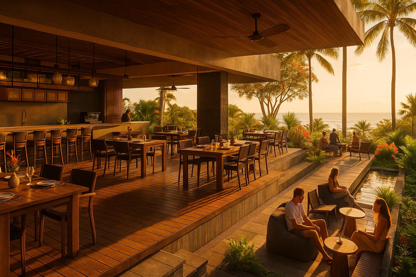 • Gehobene Restaurants und Strandbars bei Sonnenuntergang.