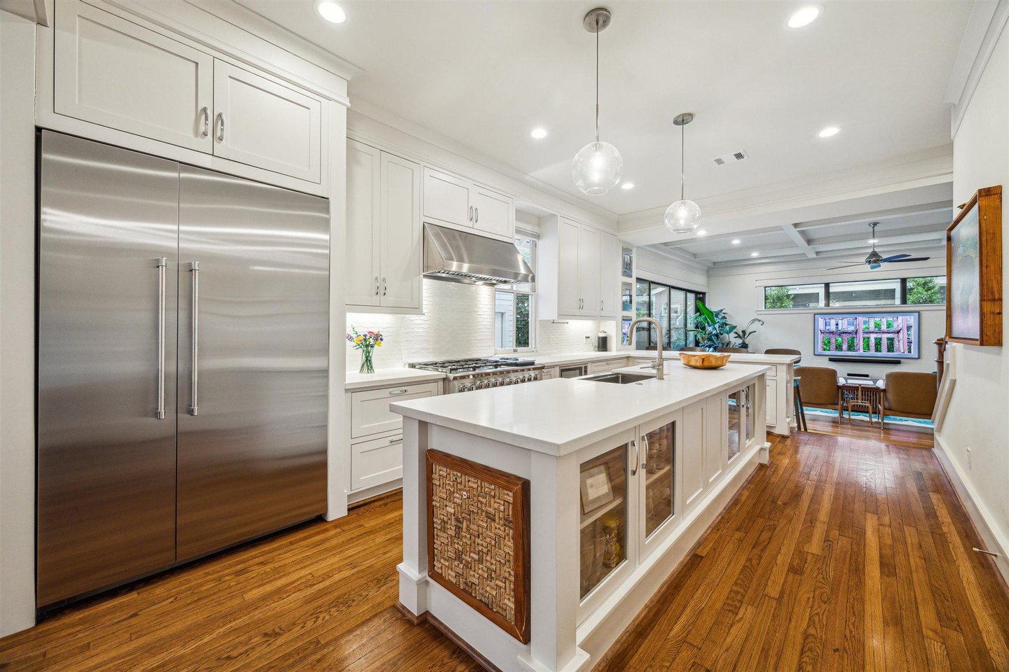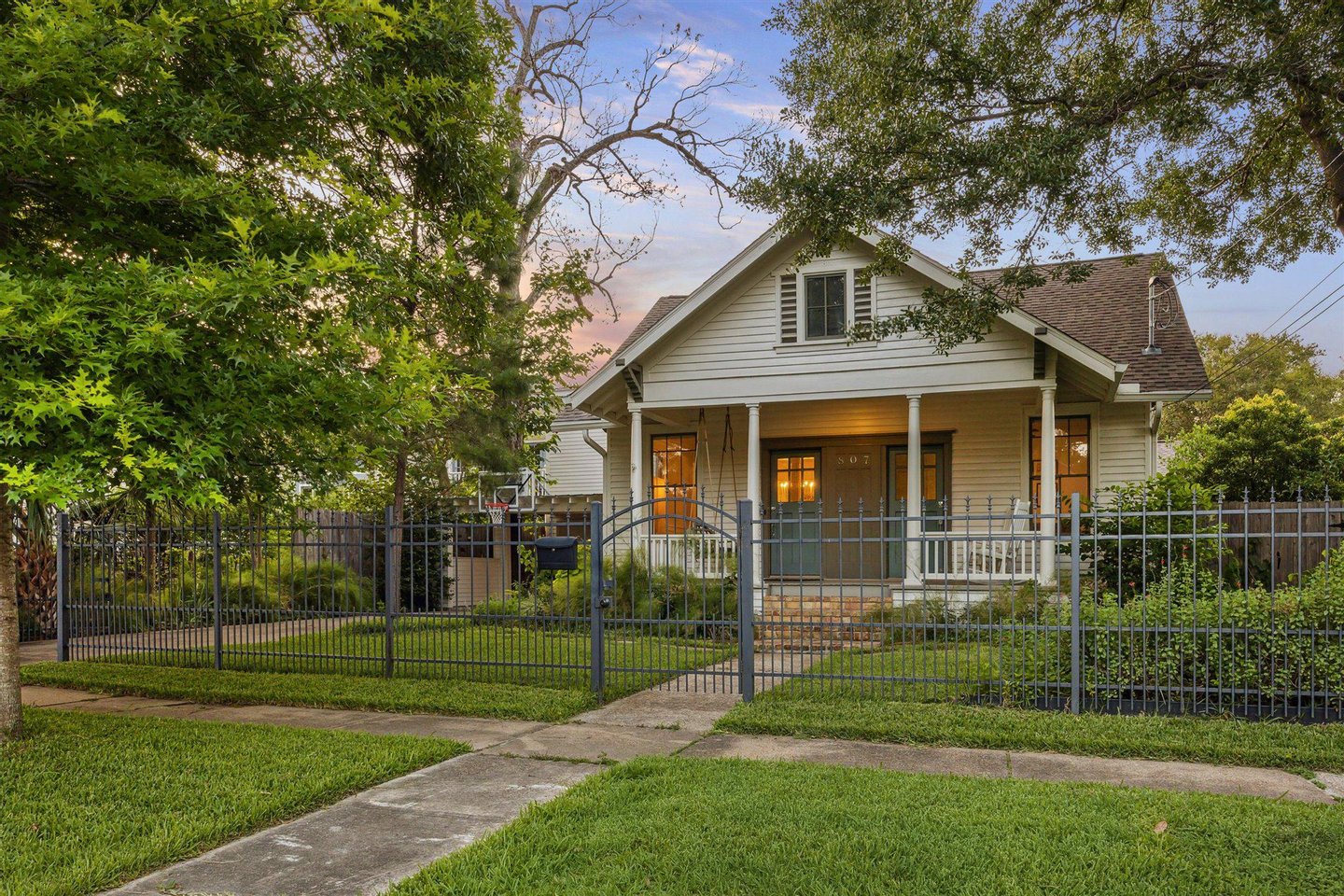 Zeitloser Charme trifft auf modernen Luxus in diesem historischen Haus im Herzen von Woodland Heights. Ursprünglich in den frühen 1900er Jahren erbaut und 2018 komplett neu gestaltet, bietet diese Residenz das Beste aus beiden Welten - klassischen Bungalow-Charme mit einem komplett renovierten, modernen Interieur. Treten Sie ein und genießen Sie hohe Decken, edle Parkettböden und exquisite Fräsarbeiten. Die offene Küche verfügt über Quarz-Arbeitsplatten, professionelle Geräte und eine atemberaubende Insel. Drei Schlafzimmer befinden sich günstig im Erdgeschoss, darunter eine geräumige Hauptsuite. Der offene Wohnbereich geht durch eine vollständig versenkbare Glasschiebewand in den Hinterhof über und schafft so ein müheloses Wohnen im Innen- und Außenbereich. Maßgeschneiderte Einbauten, eine elegante Wet-Bar und ein komplett eingezäunter Vorgarten runden das Paket ab - alles nur wenige Schritte von Parks, Wanderwegen und dem Besten der Heights entfernt. Das ist historisches Wohnen, neu definiert.