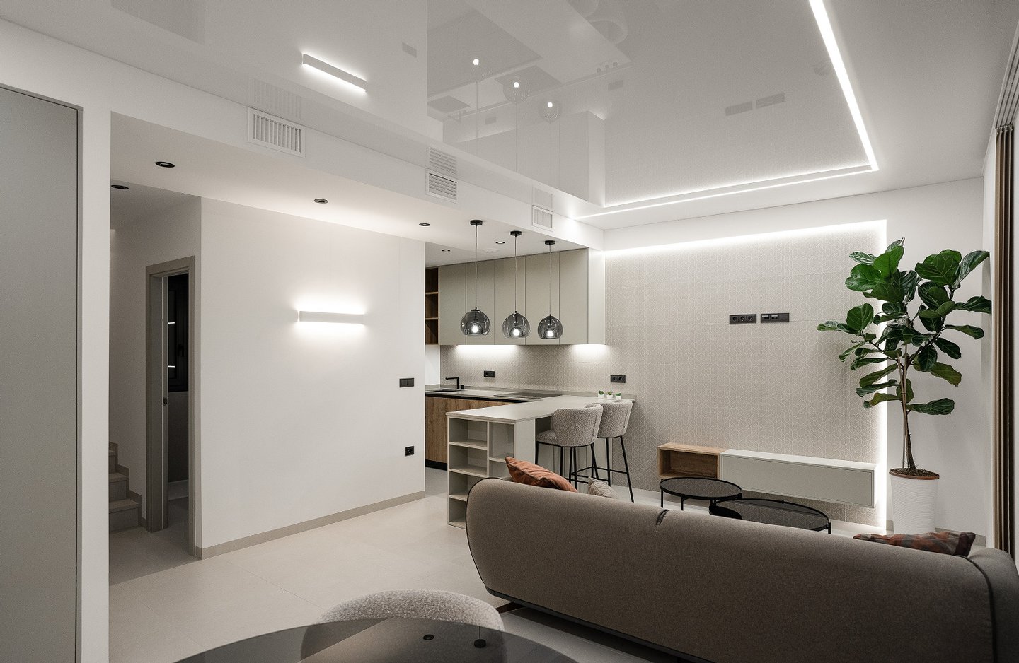 Ein privater Pool ist möglich und sorgt an heißen Tagen für eine angenehme Abkühlung. Die offene Küche verbindet moderne Funktionalität mit einem großzügigen Wohn-/Essbereich. Ein eigener Parkplatz gehört ebenfalls zur Villa.