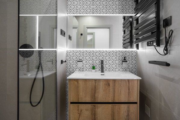BadDuschbad, Bad mit Dusche und Badewanne, Bad mit Fenster, Bidet, Pissoir