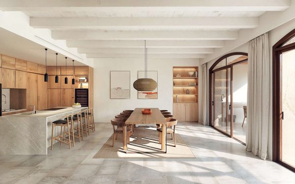 Im Herzen des charmanten Dorfes Ses Salines gelegen, bietet dieses im Bau elegantes Stadthaus im mediterranen Stil mit separatem Gästehaus eine einzigartige Mischung aus modernem Komfort und zeitlosem Charakter. Die Fertigstellung ist für 2027