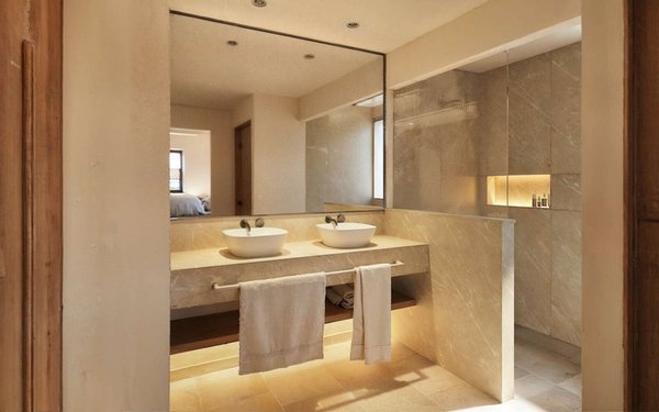Das Haupthaus erstreckt sich über zwei Ebenen und verfügt über drei geräumige Schlafzimmer, während das Gästehaus zwei weitere Suiten mit insgesamt fünf Schlafzimmern und fünf Badezimmern bietet. Ein wunderschön angelegter Innenhof verbindet die Räume mit einem 48 m² großen Pool, Oliven- und Zitronenbäumen sowie schattigen Loungebereichen. Natursteinböden, freiliegende Holzbalken und große doppelt verglaste Fenster unterstreichen die Ästhetik und Energieeffizienz des Hauses. Zur weiteren Ausstattung gehören eine voll ausgestattete Küche, Fußbodenheizung, Klimaanlage, Aufzug, Fitnessraum, Sauna und eine Garage für zwei Fahrzeuge.