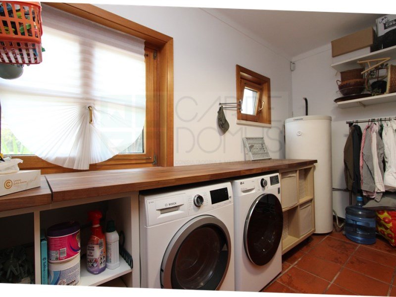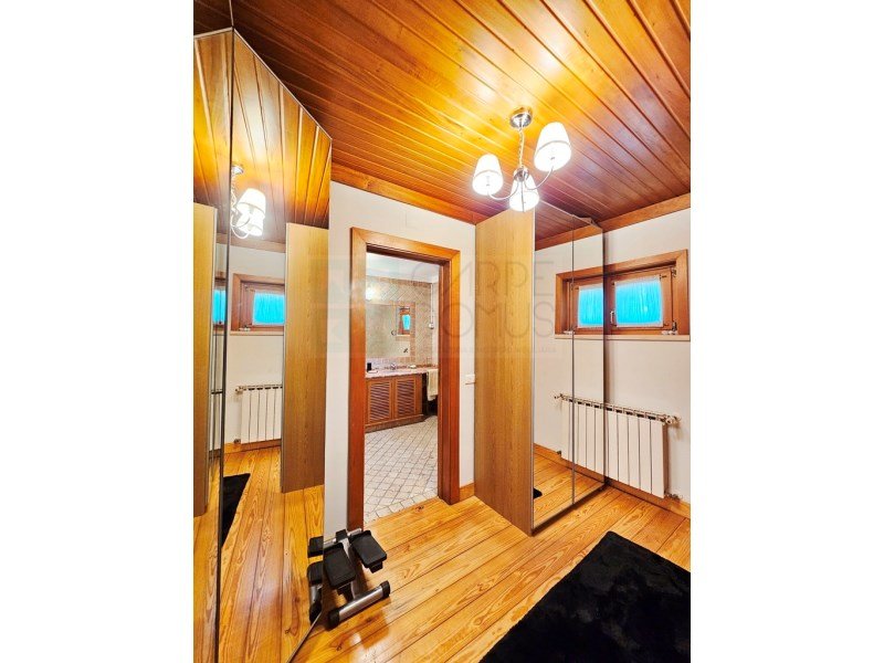 Bestehend aus großen Eingangshalle, geräumiges Wohnzimmer mit Kamin, das mit dem Esszimmer (beide mehr als 65m2) grenzt. Funktionsküche mit 17m2, Speisekammer, Wäscherei, Sozialtoilette, Spielzimmer mit Büro und Bar, 2 kleine Räume und mehrere Abstellräume. Im ersten Stock haben wir vier Schlafzimmer mit Schränken (eines davon große Suite mit Schrank und Balkon), plus 2 Badezimmer Unterstützung.