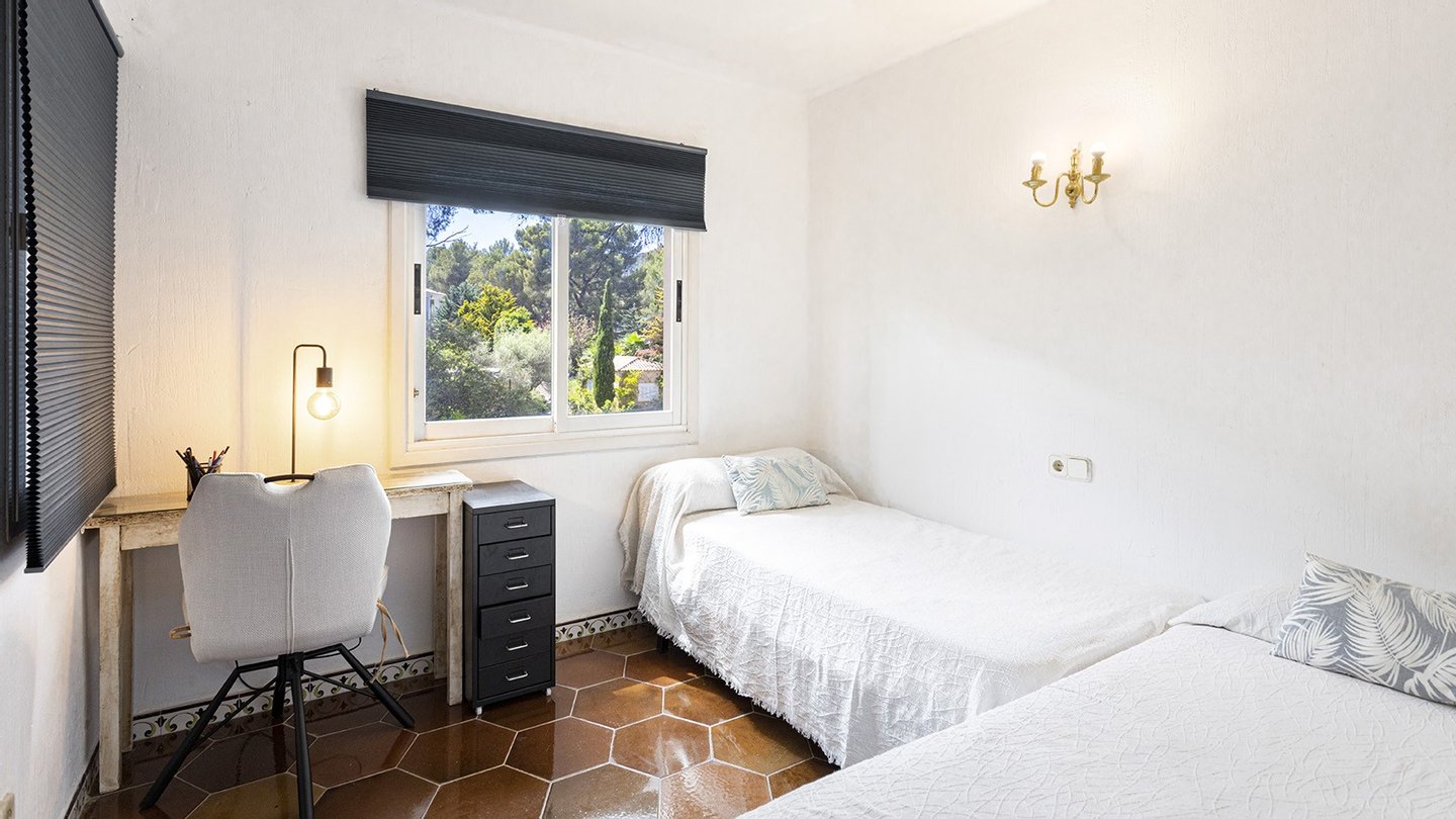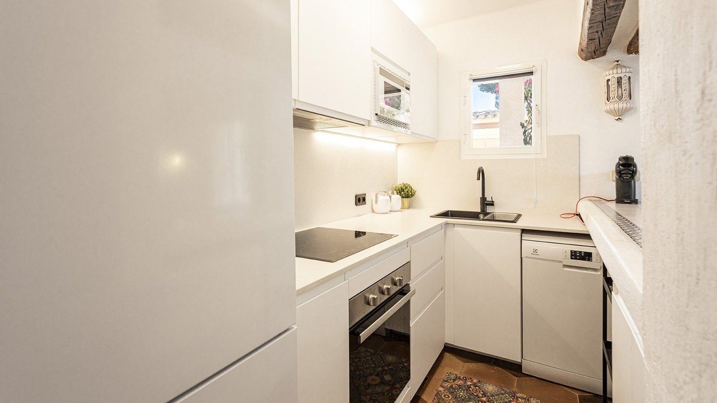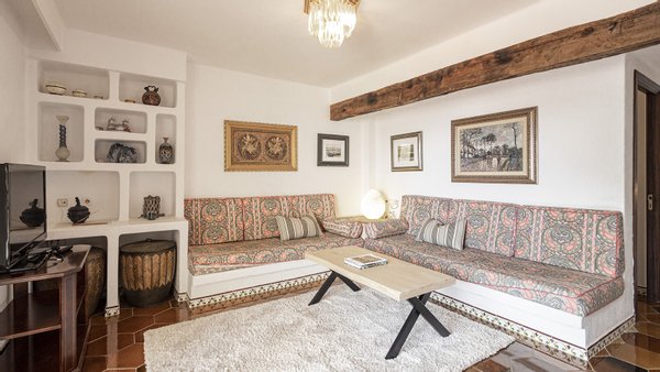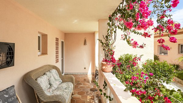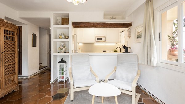 Die Duplexwohnung Wohnung in 2. Meereslinie mit eigenem Meerzugang, erteilt auf zwei Ebenen , bietet eine Wohnfläche von ca. 108 m² und verfügt über zwei Terrassen von jeweils 32 m². Im Erdgeschoss befinden sich ein Schlafzimmer, ein modernes Vollbad, das Wohnzimmer sowie die kürzlich renovierte Küche. Im Obergeschoss finden Sie das zweite Schlafzimmer, das zweite Badezimmer sowie das Wohnzimmer, das im mediterranen Stil gestaltet ist und mit einem einladenden Kamin punktet. Zusätzlich gibt es einen geräumigen Hauswirtschaftsraum, der nach einer Renovierung mit der Küche verbunden werden könnte, um eine moderne, offene Wohnfläche zu schaffen. Ein Stellplatz in der Gemeinschaftsanlage ist im Preis inbegriffen. Abgerundet wird das attraktive Angebot durch einen ebenso attraktiven Außenbereich , bestehend aus einem Gemeinschaftspool und einem Paddelcourt, welcher Bewohnern der Anlage jederzeit kostenfrei zur Verfügung steht.