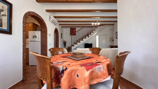 Liebevoll eingerichtete Villa mit allem Komfort den Sie zum täglichen Leben brauchen. Die Villa hat ein Wohn - Esszimmer, eine grosse Küche, vom Wohnbereich können Sie direkt auf die Poolterrasse gehen, 2 grosse Schlafzimmer im untréren Bereich mit Einbauschränken eines mit Bad en suite und ein weiteres Bad . Über ein paar Treppenstufen kommen Sie in den oberen Bereich, hier befindet sich ein Schlafzimmer mit Kleiderschrank und ein Duschbad ebenso eine grosse Sonnenterrasse.