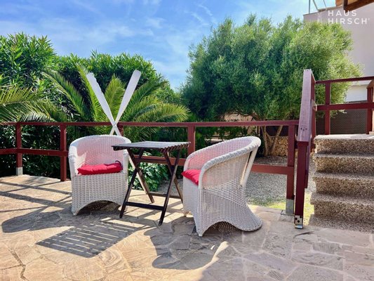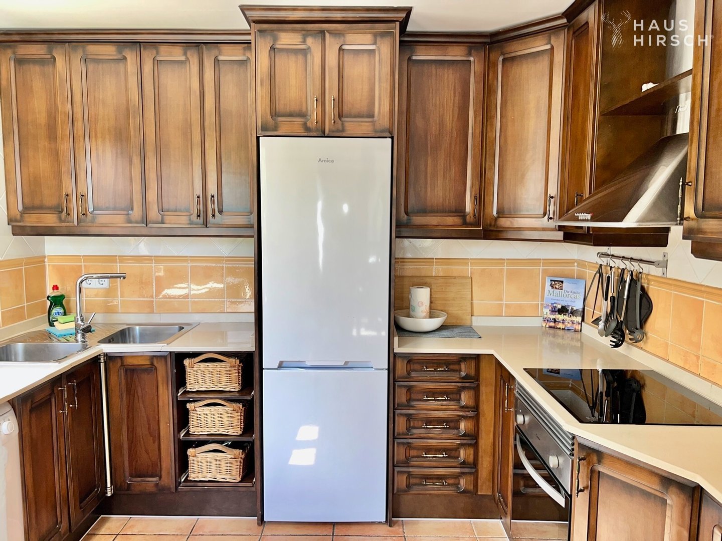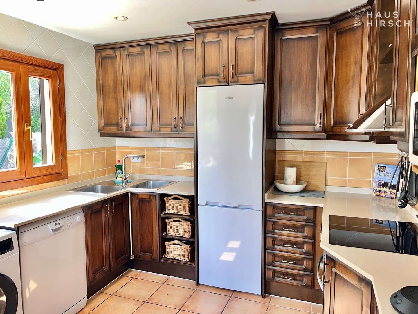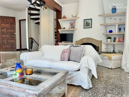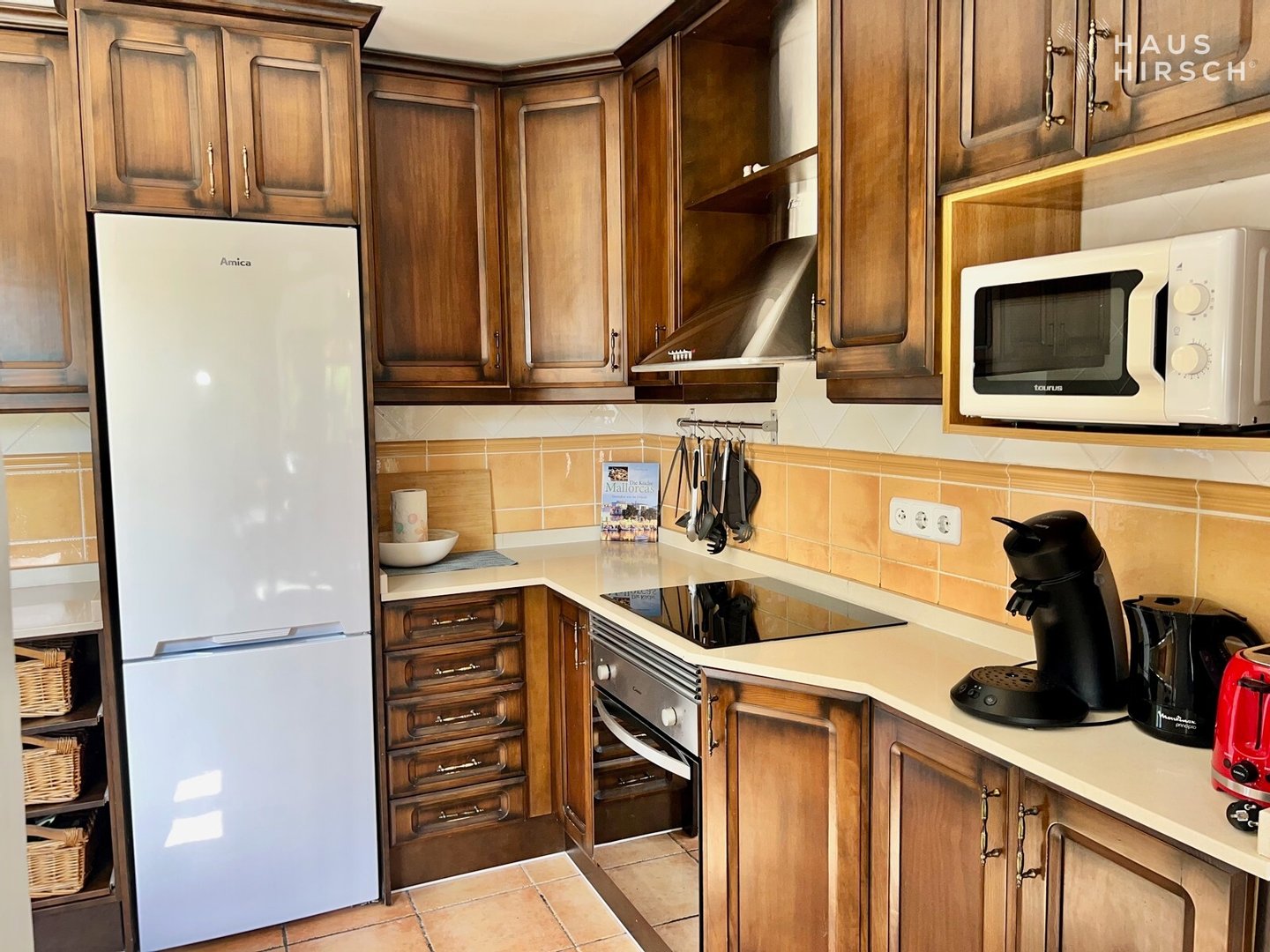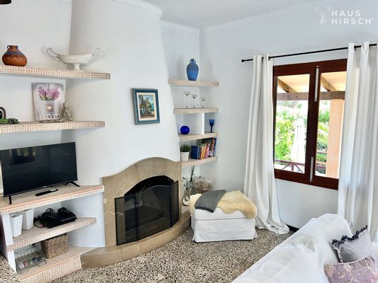 Die Villa selbst besticht durch eine durchdachte Raumaufteilung und mediterranes Flair. Insgesamt stehen drei gemütliche Schlafzimmer und zwei Bäder zur Verfügung. Der großzügige Wohnbereich mit Kamin geht harmonisch in eine offene, voll ausgestattete Küche über, die einladend und funktional gestaltet ist. Zusätzlichen Stauraum oder Platz für Hobbys bietet der praktische Keller.