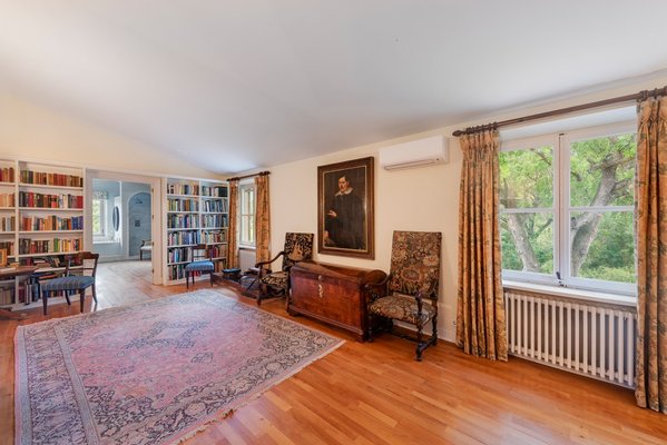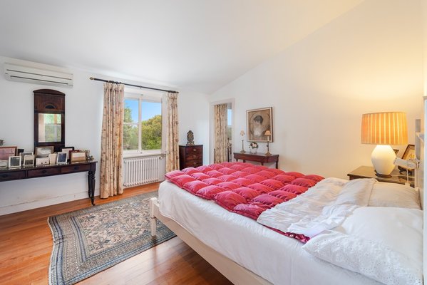 Im Obergeschoss befinden sich fünf Schlafzimmer, davon vier mit eigenem Bad. Alle Zimmer sind so ausgerichtet, dass sie der Nachmittagssonne entzogen sind, und sind durch einen nach Westen ausgerichteten Flur miteinander verbunden. Die Master-Suite bietet einen Blick auf die Bucht von Pollensa und das bewaldete Grundstück des Anwesens mit den Tramuntana-Bergen im Hintergrund.
