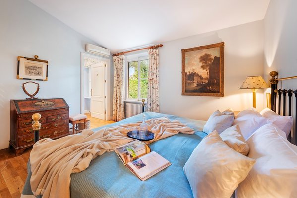Im Obergeschoss befinden sich fünf Schlafzimmer, davon vier mit eigenem Bad. Alle Zimmer sind so ausgerichtet, dass sie der Nachmittagssonne entzogen sind, und sind durch einen nach Westen ausgerichteten Flur miteinander verbunden. Die Master-Suite bietet einen Blick auf die Bucht von Pollensa und das bewaldete Grundstück des Anwesens mit den Tramuntana-Bergen im Hintergrund.