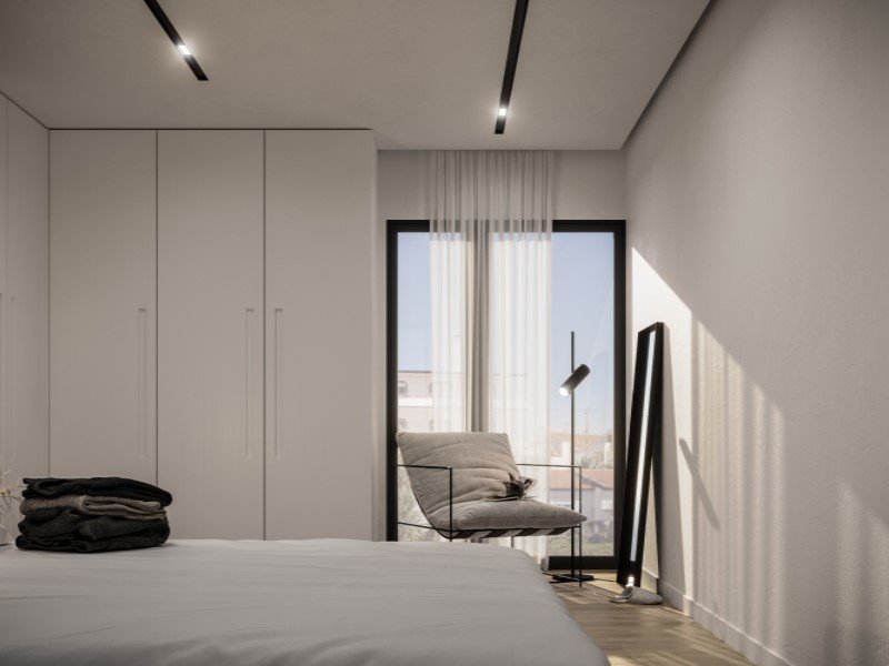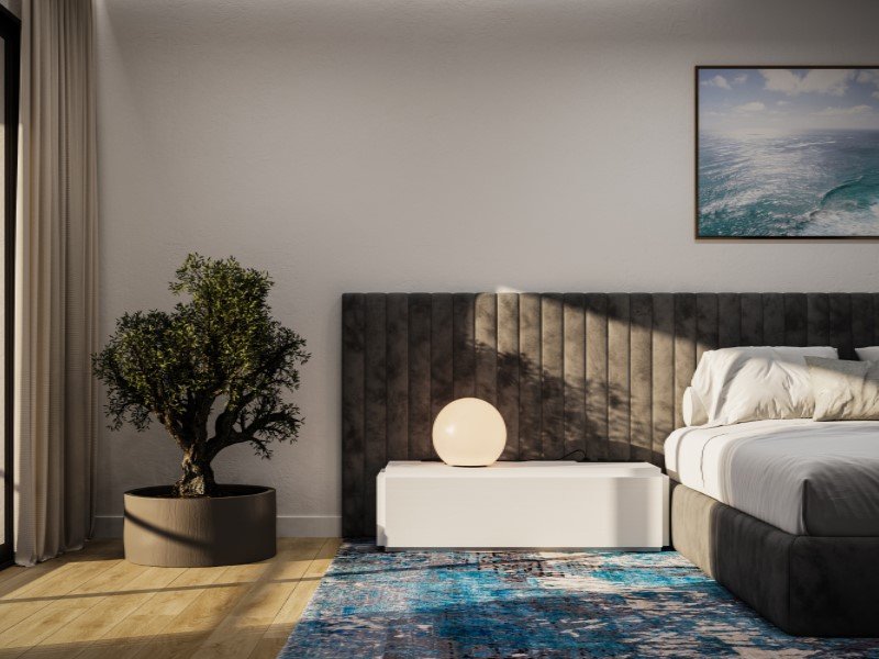 Im Obergeschoss befinden sich zwei elegante Suiten, jeweils mit Einbauschränken und Zugang zu einer nach Westen ausgerichteten Terrasse mit atemberaubendem Meerblick.