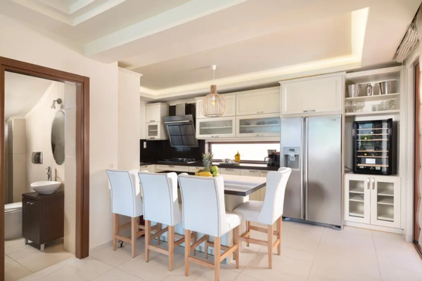 Villa 1: Besteht aus 4 Schlafzimmern, 1 Küche, 1 Wohnzimmer, 3 Bädern und 1 WC. Sie hat eine schöne Aussicht, ist möbliert, ausgestattet mit Elektrogeräten, Swimmingpool, Klimaanlage, Solarwarmwasserbereiter, Aluminiumrahmen, Fliesenböden, Kamin.