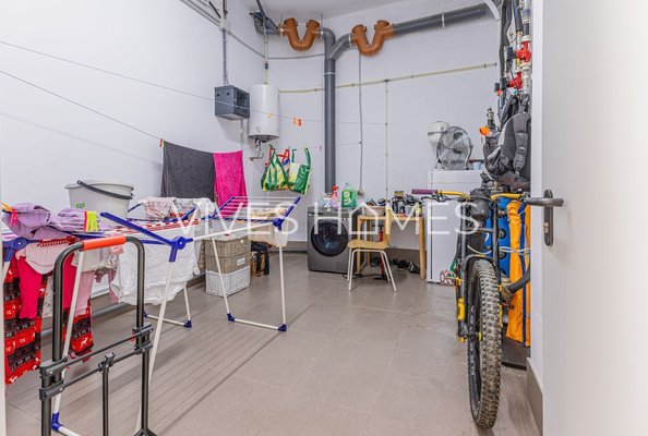 Zu guter Letzt befindet sich in der unteren Etage des Hauses eine große Garage mit einem weiteren Schlafzimmer mit eigenem Bad, dem Hauswirtschaftsbereich und einem Abstellraum.
