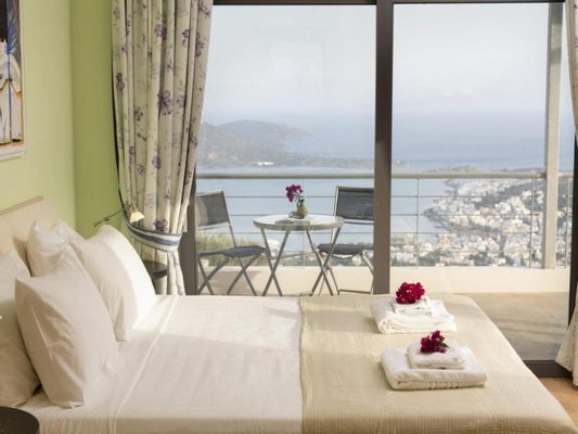 • Unverbaubarer Meerblick: Panoramablick auf die Mirabello-Bucht.