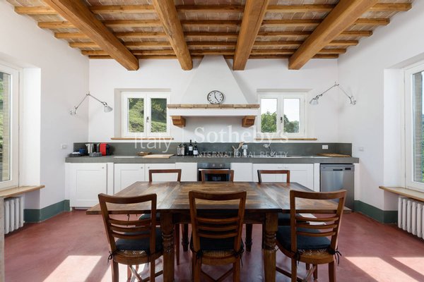 In dieser verzauberten Szenerie liegt ein 7 x 14 Meter großer Swimmingpool in sonniger Panoramalage, eingebettet in einen gepflegten Garten. Die Liegenschaft ist eine perfekte Symbiose aus Natur, Komfort, Design und unternehmerischem Geist. Die drei unabhängigen Landhäuser - einst traditionelle Bauernhäuser - wurden mit höchster handwerklicher Präzision und edlen Materialien vollständig restauriert. Auf insgesamt ca. 721 m² wurden großzügige, lichtdurchflutete Innenräume geschaffen, die modernes Wohnen und luxuriöse Gastlichkeit in harmonischer Weise verbinden.
