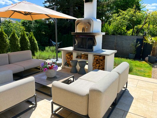 - Italienischer Outdoor Steingrill mit Pizzaofen