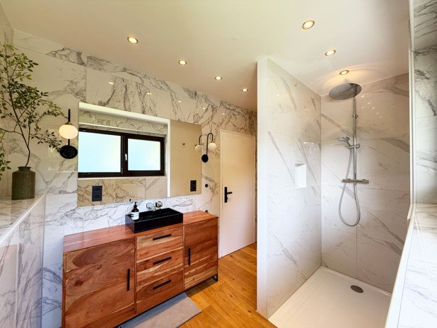Von 2018 bis 2024 wurden Haus, Technik und Außenbereich umfangreich modernisiert und umgebaut. Die Ausstattung mit viel Liebe zum Detail ist zeitlos ...mehr lesen