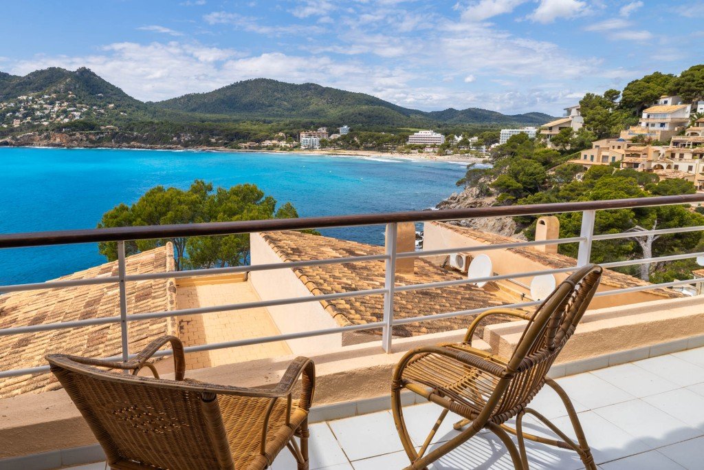 Dieses beeindruckende Duplex-Apartment in Canyamel bietet einen atemberaubenden Panoramablick auf das Meer und liegt nur wenige Gehminuten vom Strand entfernt.