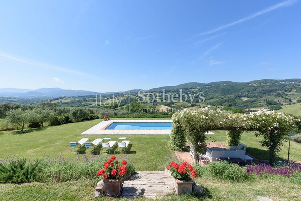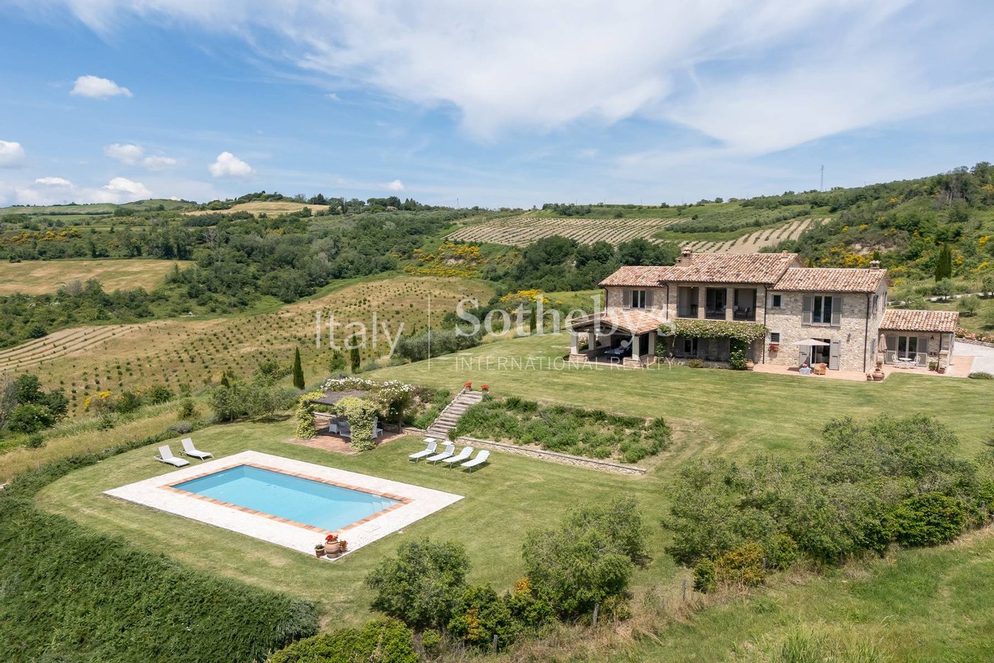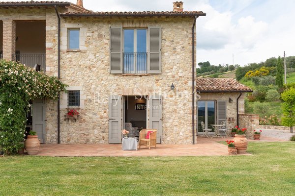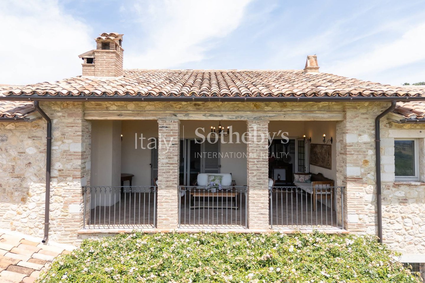 Eingebettet in die mystische Hügellandschaft Umbriens entstand diese elegante Villa aus der meisterhaften Restaurierung eines Bauernhauses aus dem 19. Jahrhundert. Mit handwerklichem G