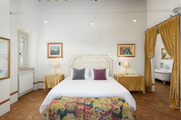 Die Innenräume verteilen sich auf zwei Etagen und bieten großzügige Volumen, edle Oberflächen, antike Steinverkleidungen, Terrakottaböden, freiliegende Holzbalken und stilvoll gestaltete Bäder. Das Herzstück des Hauses ist der quadratische Wohn- und Essbereich - ein seltenes architektonisches Merkmal - der aus dem ehemaligen Stall entstanden ist und heute ein lichtdurchflutetes, elegantes Wohnzimmer bildet, mit direktem Zugang zum Garten und zur überdachten Veranda - ideal für entspannte Stunden im Freien.