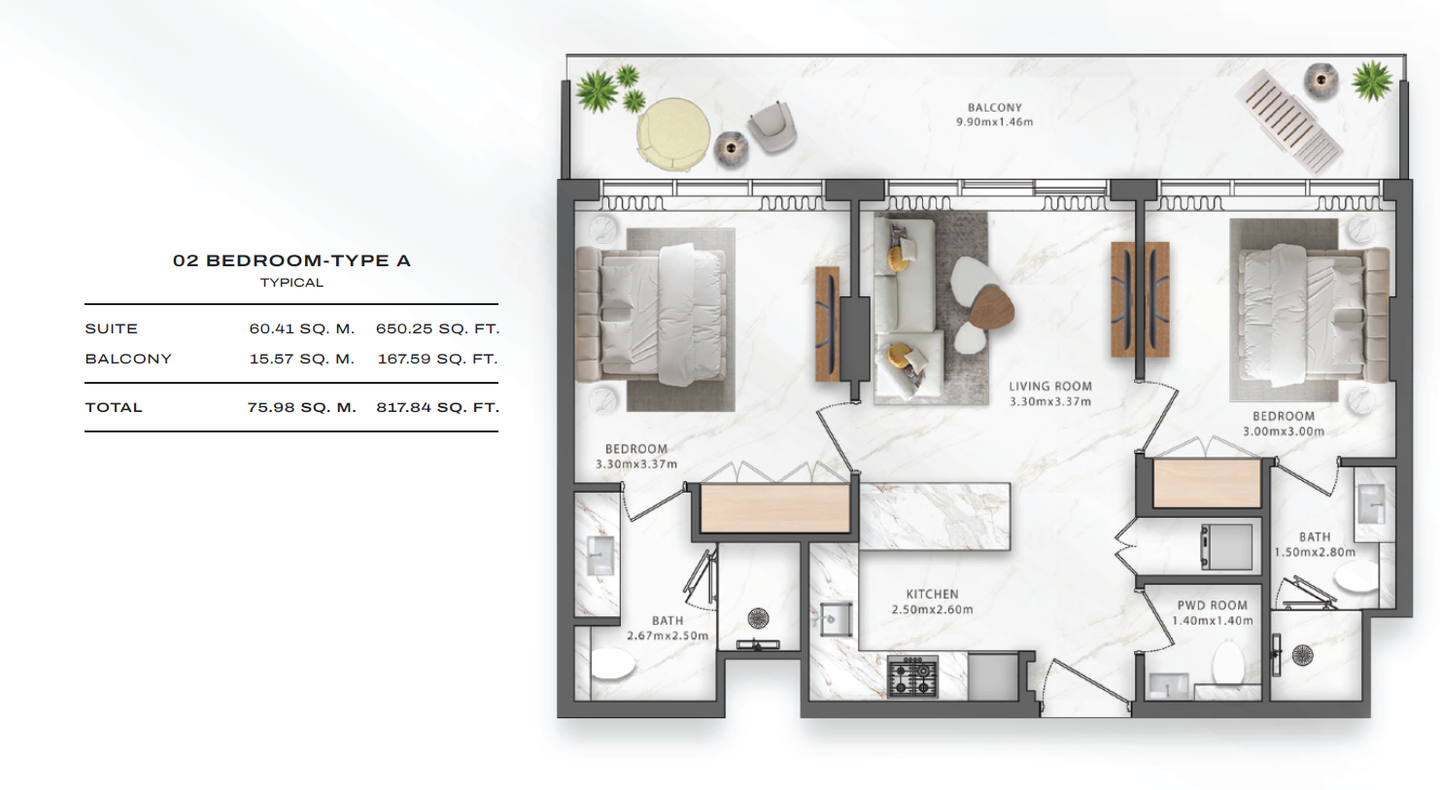 Beim Betreten dieser traumhaften 2-Zimmer-Wohnung werden Sie von einer Vielzahl von Annehmlichkeiten begrüßt, die ein luxuriöses Wohnen versprechen. Der Infinity-Rooftop-Pool lädt zum Entspannen und Genießen ein, während das versunkene Sitzbereich im