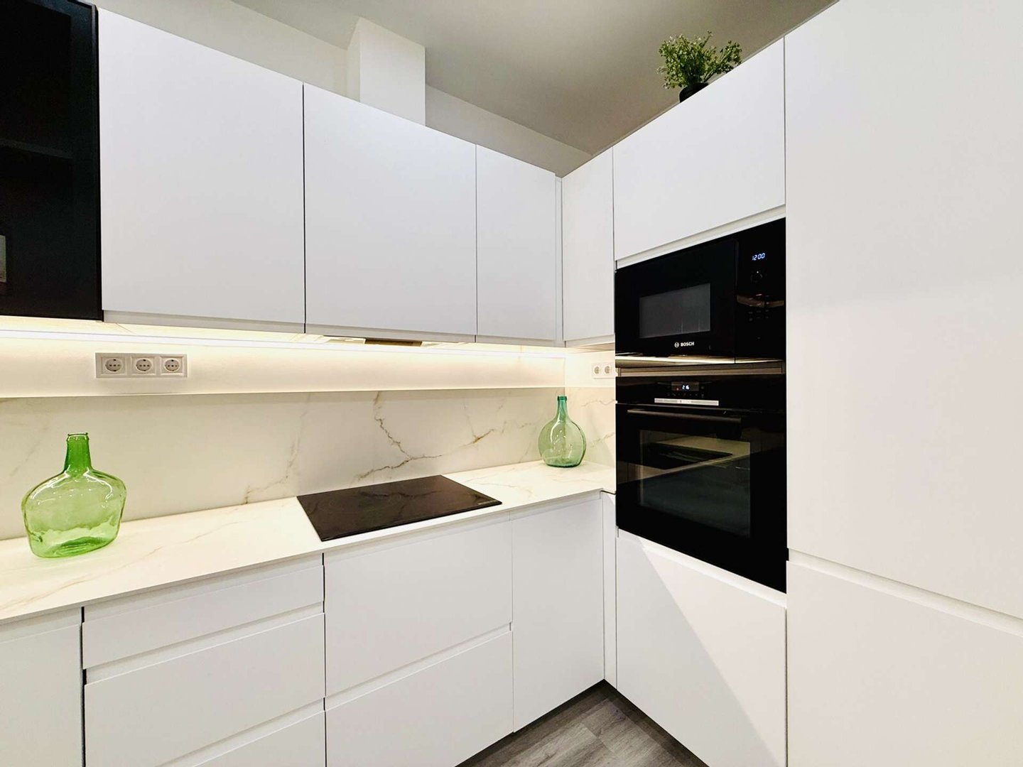 In diesem geräumigen Apartment finden Familien, Paare und Entrepreneure den idealen Ort zum Leben und Arbeiten. Die voll ausgestattete Küche lädt dazu ein, gemeinsame Mahlzeiten zuzubereiten und gemütliche Abende zu verbringen.