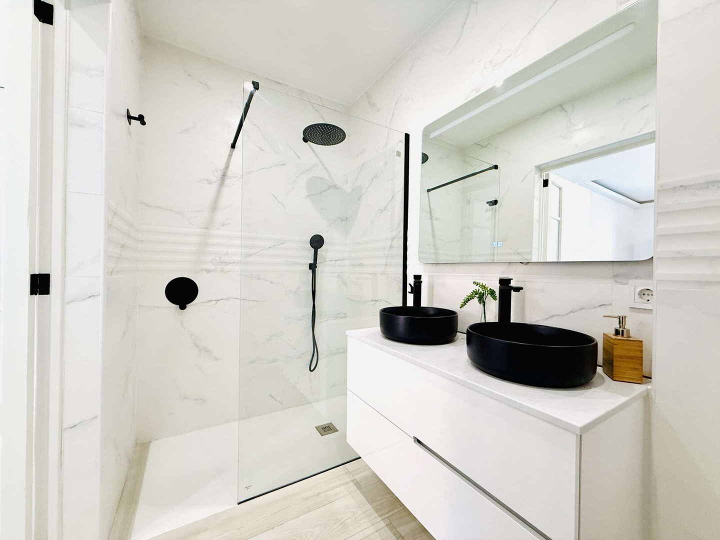 Die Wohnung verfügt über zwei Schlafzimmer, jeweils mit eigenem angeschlossenem Bad und eingebauten Schränken. Im Hauptschlafzimmer erwartet Sie zudem ein französischer Balkon. Die gesamte Wohnung ist mit Fußbodenheizung ausgestattet und in allen Räumen sorgt eine Klimaanlage für angenehme Temperaturen zu jeder Jahreszeit.
