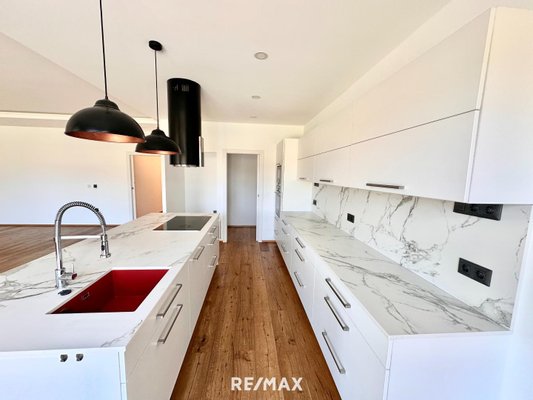 Die moderne Küche ist optimal ausgestattet und bietet viel Platz für kulinarische Kreationen. Sie eignet sich perfekt für gesellige Kochabende mit Familie und Freunden.
