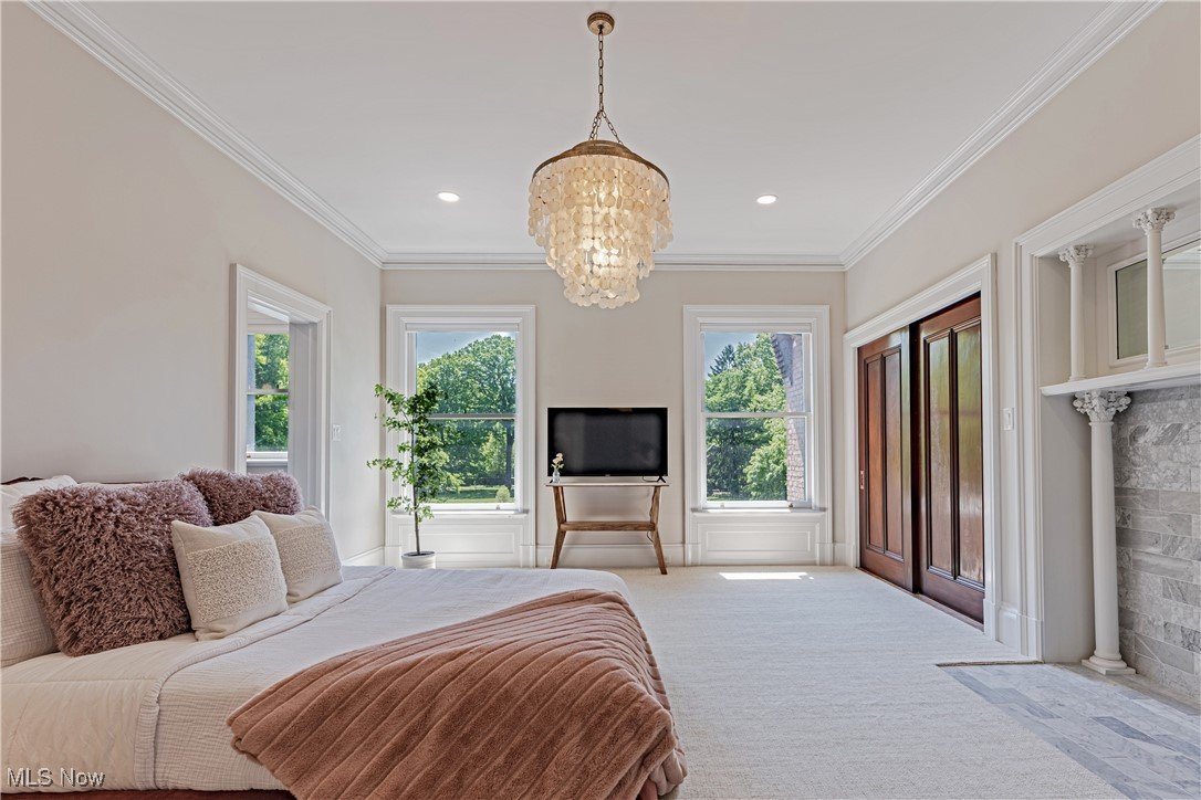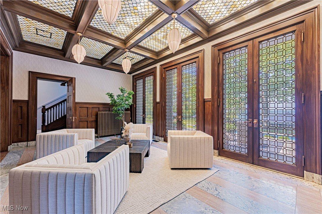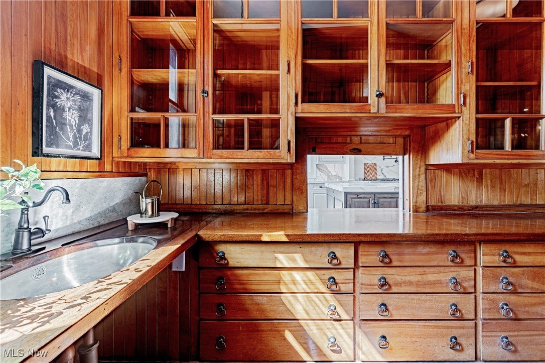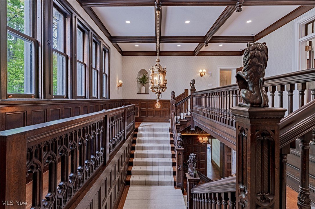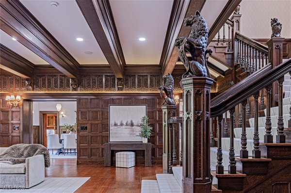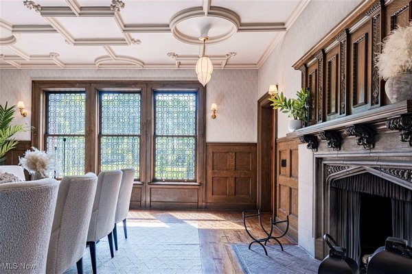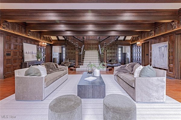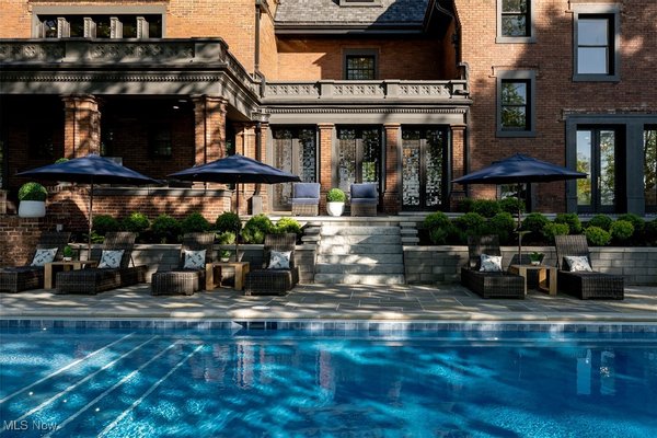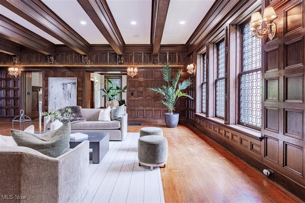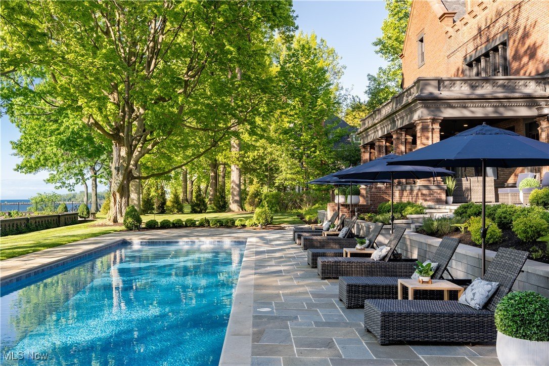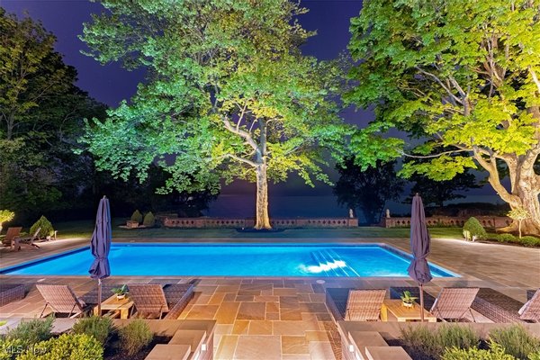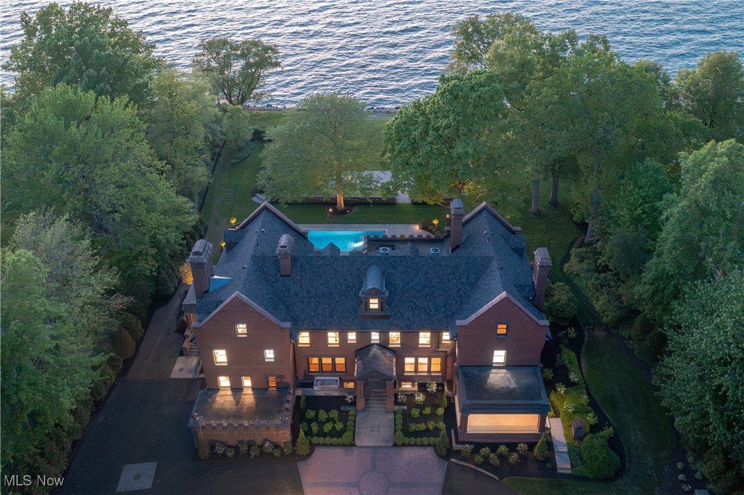 Auf einem 3,5 Hektar großen Grundstück an der Küste des Eriesees in Bratenahl gelegen, durchlief diese Grande Dame aus dem goldenen Zeitalter einen einjährigen Umbau, bei dem mit größter Sorgfalt das Haus ins 21. Jahrhundert gebracht wurde. Von der neu gebauten Terrasse und dem Pool aus Blaustein bis hin zu den sorgfältig restaurierten originalen Türbeschlägen wurde bei der Perfektionierung dieses exquisiten Anwesens kein Detail übersehen. Der große Eingangsbereich öffnet sich in eine exquisite Eingangshalle, in der die volle Pracht des Hauses enthüllt wird. Als Zeugnis der Handwerkskunst einer vergangenen Ära ist jede Wand ein Kunstwerk, das mit komplizierten Schnitzereien verziert ist, einer Symphonie aus importiertem Nussbaum und Eiche. Spektakuläre Fenster aus geschliffenem Bleiglas, ein Markenzeichen des ersten Stocks, werfen prismatisches Licht in die Räume und erzeugen ein ständig wechselndes Wechselspiel von Farbe und Schatten. Das große Esszimmer, das ebenso beeindruckend ist, verfügt über einen weiteren Kamin und Akkordeontüren, die sich in einen atemberaubenden Wintergarten mit polierten Marmorböden und einem atemberaubenden Oberlicht aus bleihaltigem Bernsteinglas öffnen. Draußen führt eine Steinterrasse hinunter zum nassen Blausteinhof und dem beheizten Pool mit Blick auf den See und das exquisite Gelände dahinter. Ein hochmodernes Smart-Home-System Control4 wurde nahtlos integriert und bietet Komfort und Steuerung auf Knopfdruck. Fast jedes Element des Hauses wurde ersetzt oder restauriert. Alle Schlafzimmersuiten wurden luxuriös ausgestattet und befinden sich im zweiten Stock. Die dritte Etage und die untere Etage wurden unglaublich als Unterhaltungsbereiche für modernes Wohnen neu konzipiert. Der ursprüngliche Ballsaal wurde zu einem modernen Spielzimmer und Heimkino umfunktioniert, und die untere Ebene dient nun als privater Spielplatz mit einem Billardzimmer, einem Pokerbereich, einer Bar mit einem temperaturgesteuerten Weinkeller und einem Verkostungsraum sowie einem Fitnesscenter mit Sauna. Das ursprüngliche Torhaus wurde wunderschön in ein Gästehaus mit 2 Schlafzimmern restauriert.