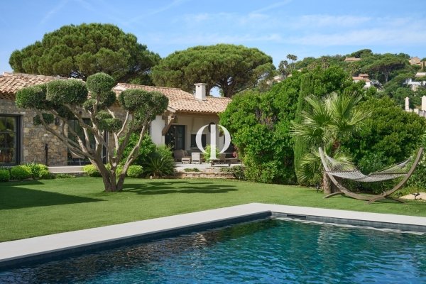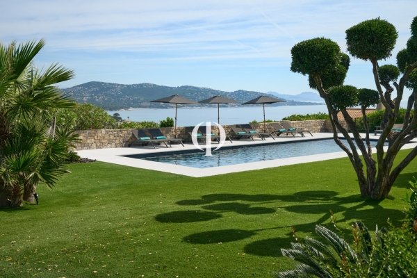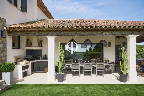 Auf den vertraulichen Höhen von Sainte-Maxime mit atemberaubendem Meerblick gelegen, verkörpert diese Villa die Kunst des Lebens am Mittelmeer. Hinter der mit behauenem Stein verzierten Fassade und dem mit alten Ziegeln patinierten Dach erstreckt