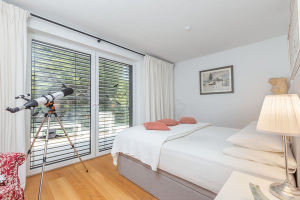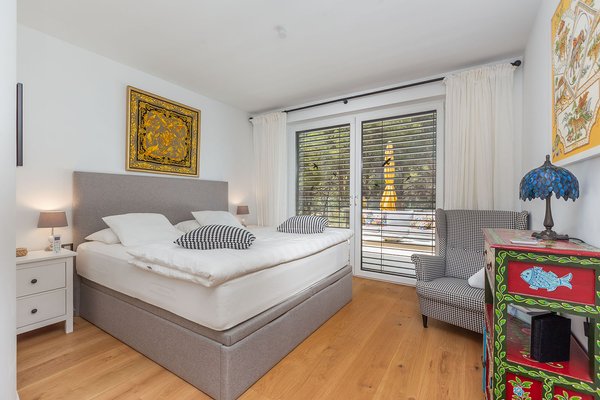Der Hauptwohnbereich befindet sich im Erdgeschoss und öffnet sich zu einer überdachten Terrasse. Das Grundstück liegt in leichter Hanglage und grenzt an eine geschützte Grünzone, was für besonders viel Ruhe und Privatsphäre sorgt.