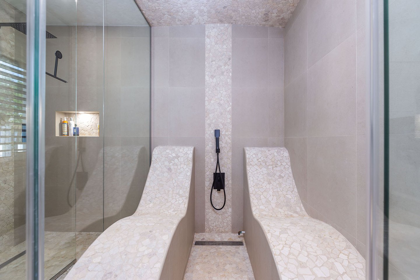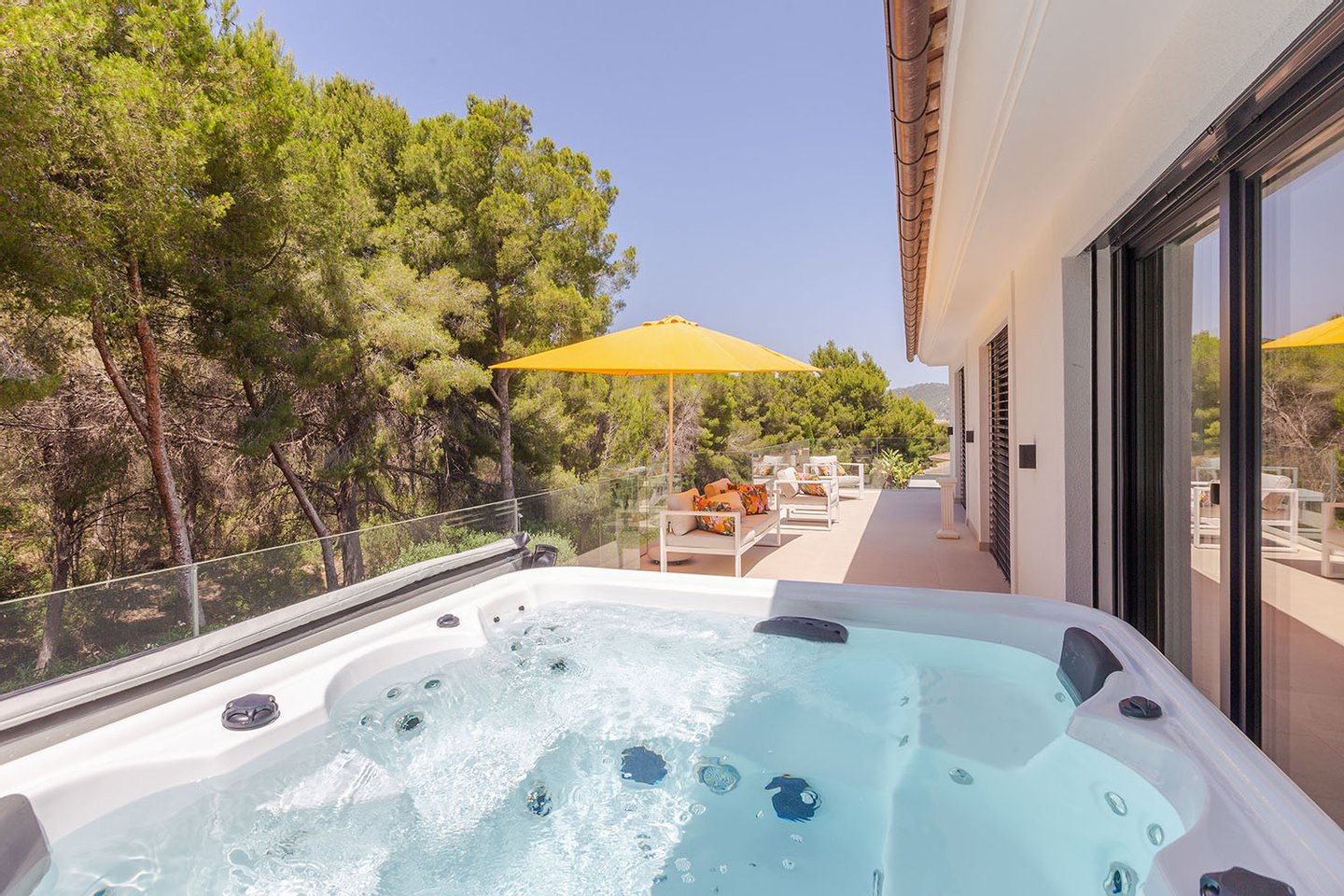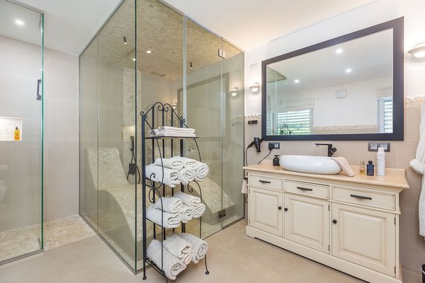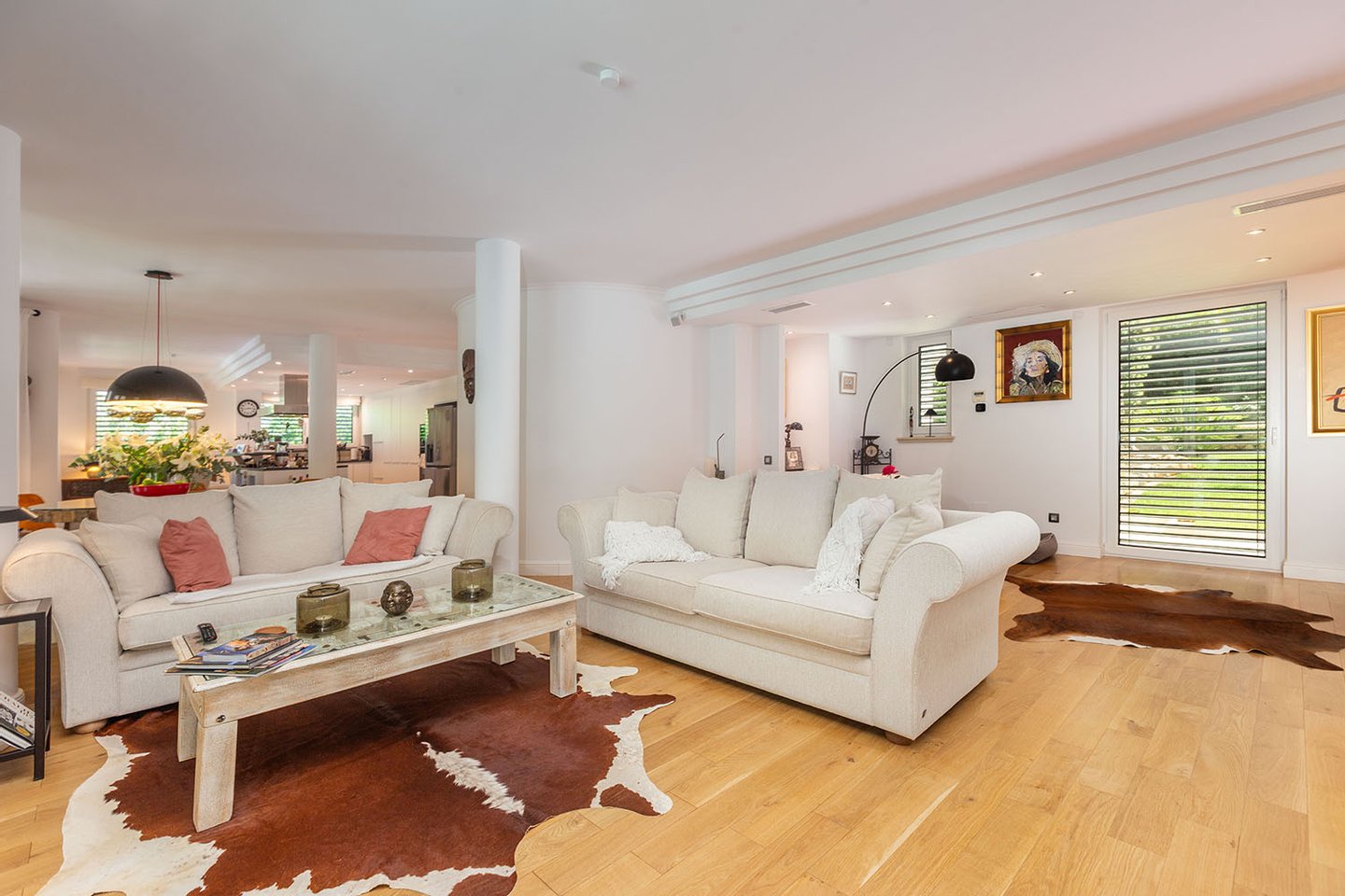 Zur komfortablen Ausstattung gehören unter anderem eine Fußbodenheizung (Bäder), Klimaanlage, Solartechnologie, Swimmingpool, ein Hammam und Jacuzzi, eine moderne Markenküche, ein Fitnessraum, ein Kaminofen, eine Garage mit E-Ladestation.