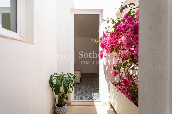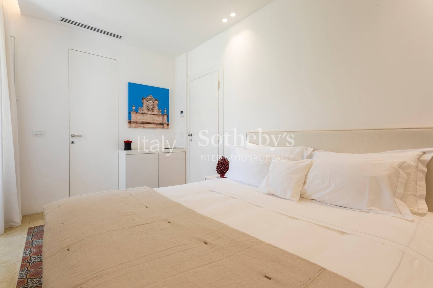 Die Residenz erstreckt sich über zwei Ebenen. Im ersten Stock, der über eine elegante Treppe erreichbar ist, eröffnet sich ein großzügiger Flur, der zu vier Suiten führt - alle mit eigenem Bad und begehbarem Kleiderschrank. Eine der Suiten, im Erdgeschoss gelegen, bewahrt den authentischen Charme eines traditionellen sizilianischen Dammuso. Der Wohnbereich umfasst ein stilvolles Esszimmer mit direktem Zugang zu einem bezaubernden Innenhof.