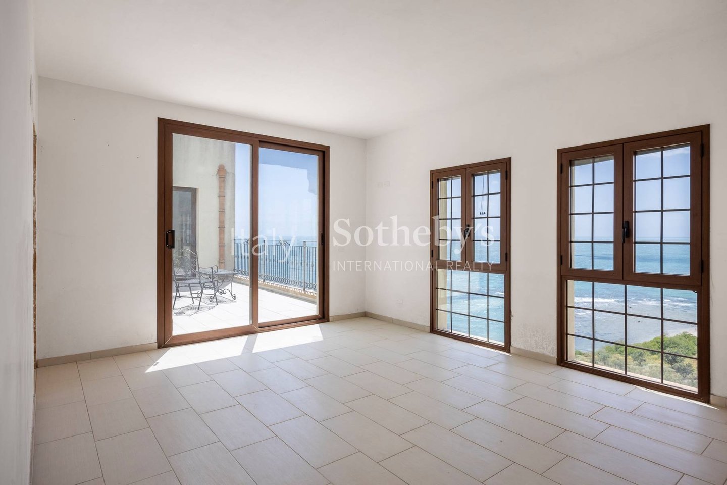 Diese herrliche Immobilie erstreckt sich über zwei Etagen mit einer Gesamtfläche von 422 m² und wird durch eine großzügige Panoramaterrasse von 30 m² bereichert, die einen atemberaubenden Blick auf das kristallklare Meer und die langen Sandstrände der sizilianischen Küste bietet.