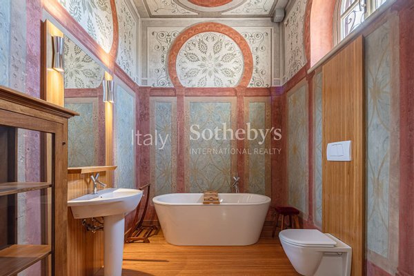 Eine kürzlich durchgeführte Renovierung hat die Serviceräume und den Schlafbereich mit hochwertigen Materialien, modernen Lösungen und zeitgenössischem Mobiliar stilvoll neu gestaltet und dabei ein gelungenes Zusammenspiel von Geschichte, Stil und Eleganz geschaffen. Die Anlage, die den weitläufigen Park mit italienischem Garten, großzügige Gemeinschaftsflächen im Erdgeschoss der Villa sowie einen Pool und einen Tennisplatz umfasst, ist heute als Wohnanlage organisiert. Den Eigentümern stehen die Gemeinschaftsbereiche und Einrichtungen zur geregelten Nutzung zur Verfügung und profitieren von einer ausgezeichneten Instandhaltung.
