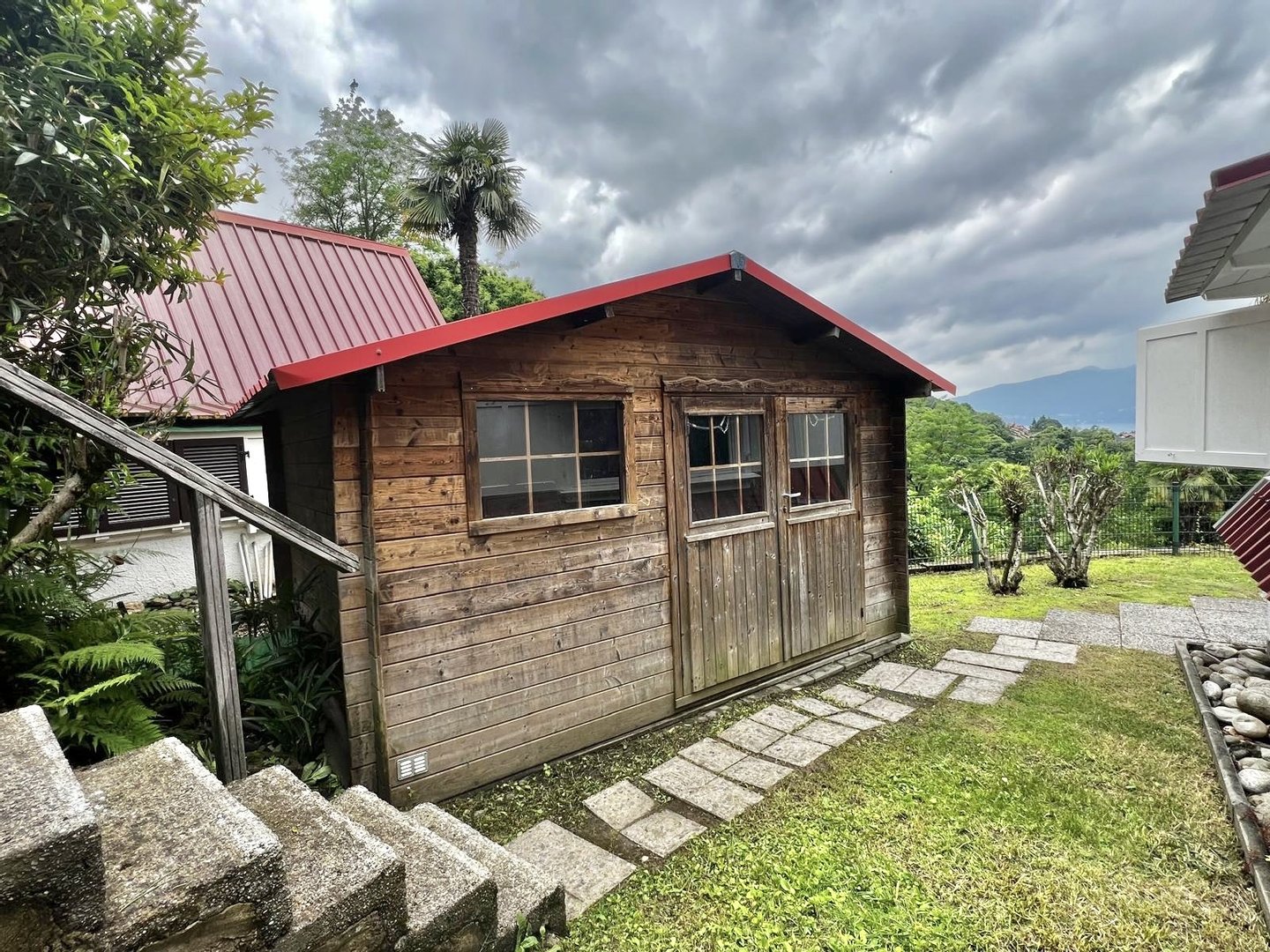 In der sehr gepflegten Ferienanlage „Villaggio Olandese", ca. 3,5 km südlich von Luino, in der Gemeinde Brezzo di Bedero in schöner bewaldeter Umgebung liegt dieses möblierte Ferienhäuschen auf zwei Ebenen mit Terrasse, Garten und Seeblick. Die Anlage verfügt über ein großes Schwimmbad mit Kinderplanschbecken, Tischtennis, Minigolf, Tennisplatz, sowie Rezeption und Restaurant.
